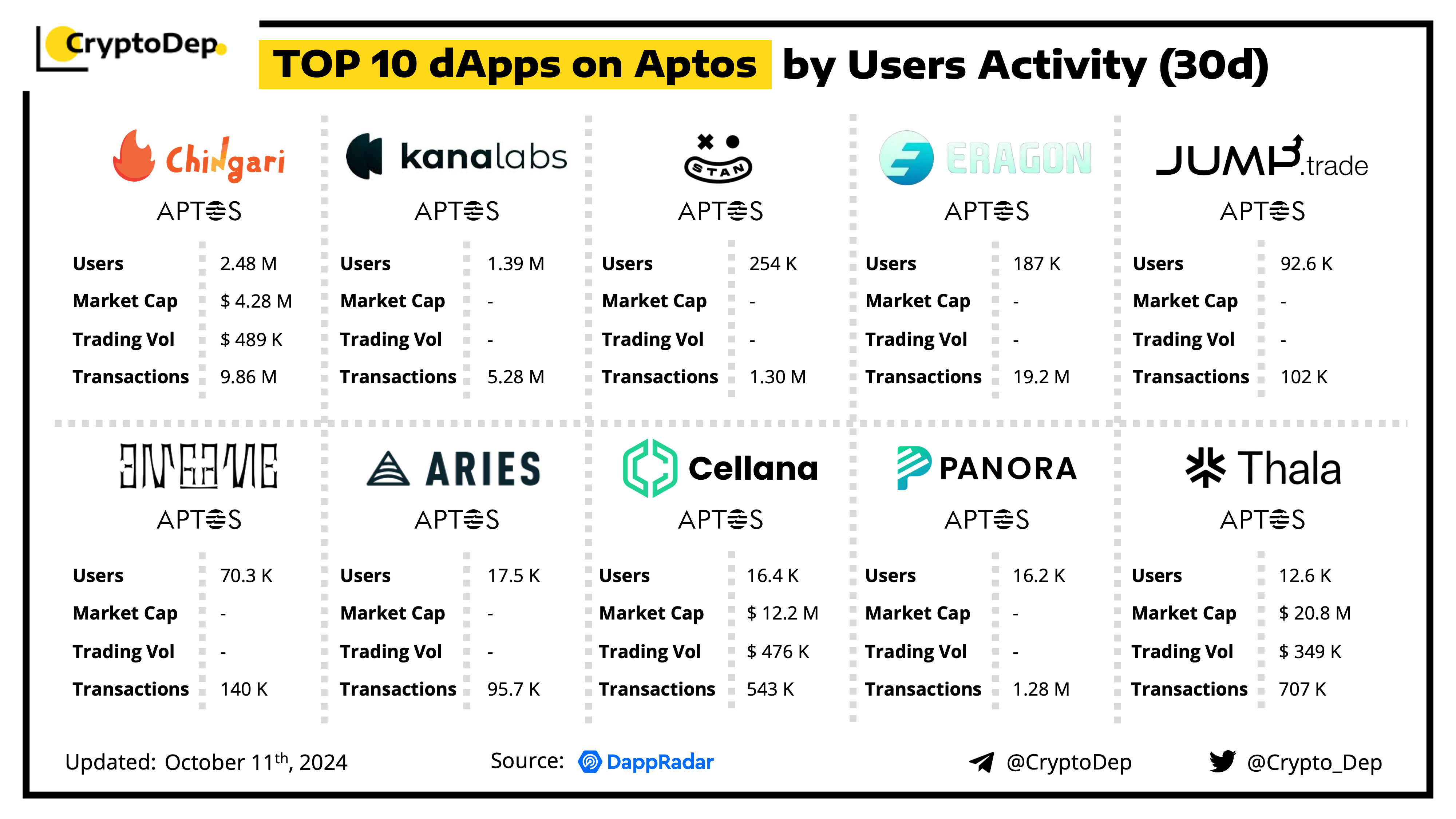 ββTOP 10 dApps on Aptos by Users (30d)