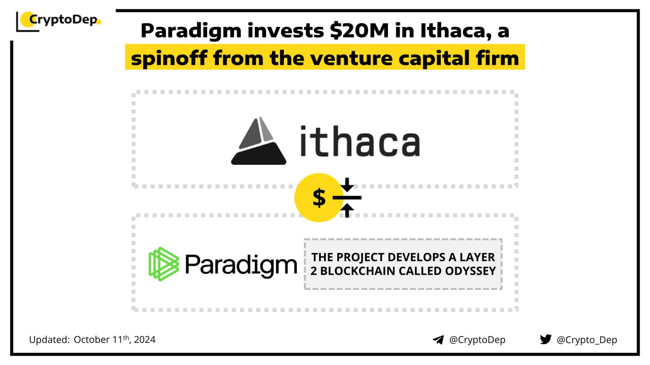 Paradigm has announced it has invested $20M in Ithaca, a spinoff from the venture capital firm building a Layer 2 blockchain called Odyssey. The Layer 2, which is built with Reth and the OP Stack, is now live on testnet. According to the VC's representatives, Paradigm will continue to build and do research, the creation of a new company, as it has done with Ithaca, should not be considered a sign of more things to come.