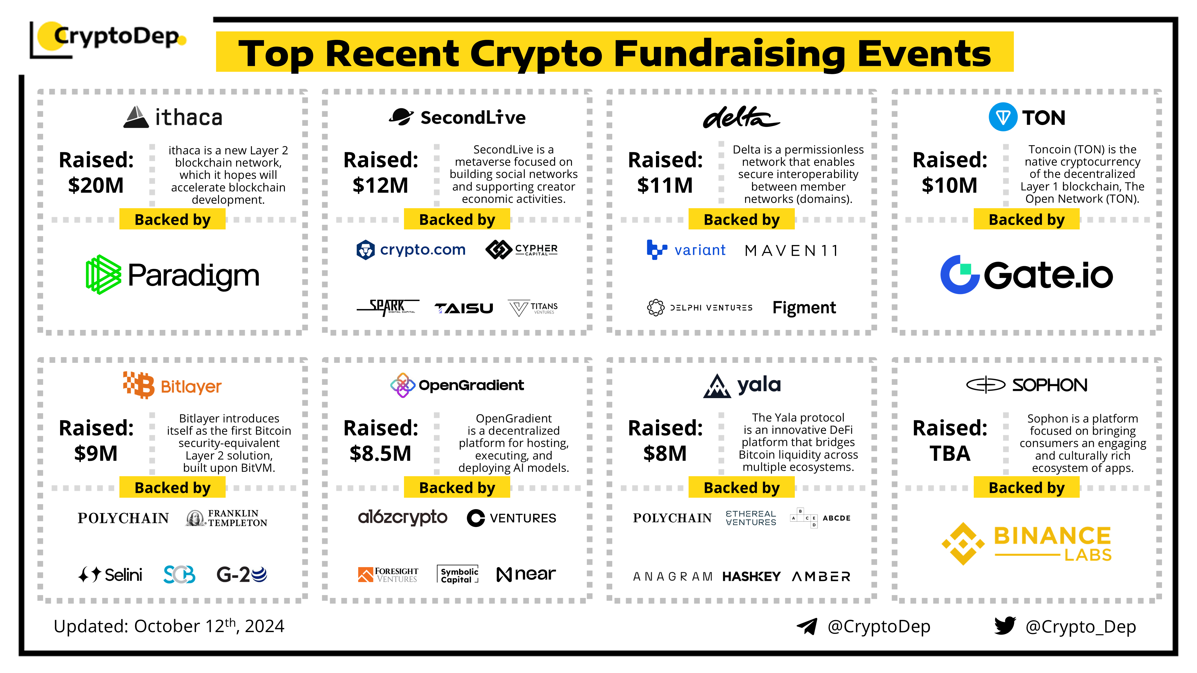 Presenting a list of some recent crypto fundraising events, backed by well-known investors such as Paradigm, a16z crypto (CSX), Polychain, Binance Labs, Variant Fund, Hashkey, Coinbase Ventures, Franklin Templeton, Maven 11, Figment Capital, NEAR Protocol, Crypto.ΡΠΎm, Gate.ΡΠΎ, and others. Let's take a look!