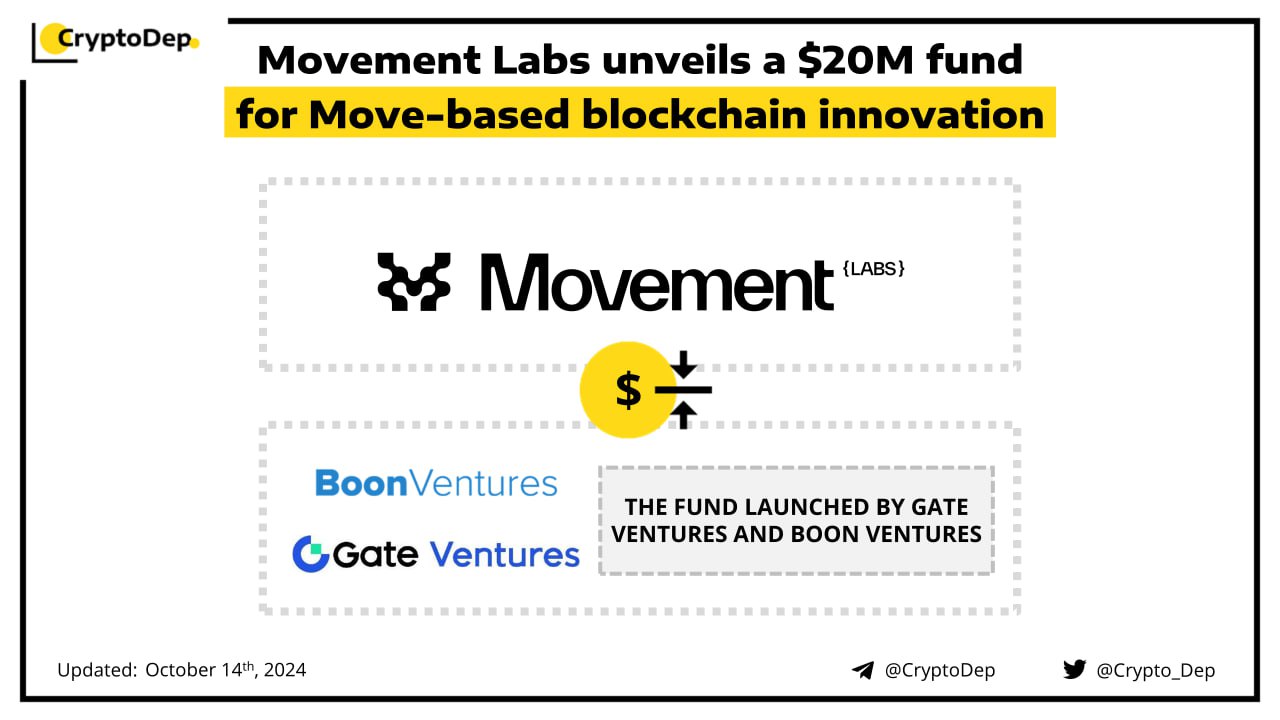 Movement Labs has announced that Gate Ventures and Boon Ventures are launching a $20M fund for Move-based blockchain innovation. The innovation aims to accelerate the Move ecosystem and support builders creating the future of DeFi, GameFi, and cross-chain infra.