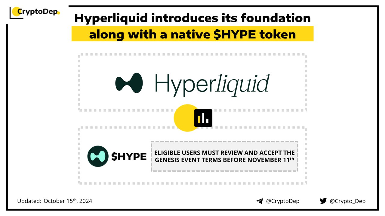 Hyperliquid has established the Hyper Foundation to support the growth of the Hyperliquid blockchain and ecosystem. Moreover, the project has announced an upcoming launch of the $HYPE token and its genesis distribution. To participate, eligible users must review and accept the Genesis Event Terms before November 11th, 23:59 UTC. Hyperliquid is a decentralized perpetual exchange (DEX) built on a high-performance Layer 1 (L1) blockchain.