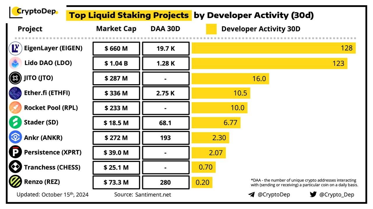 ββTop Liquid Staking Projects by Developer Activity (30d)