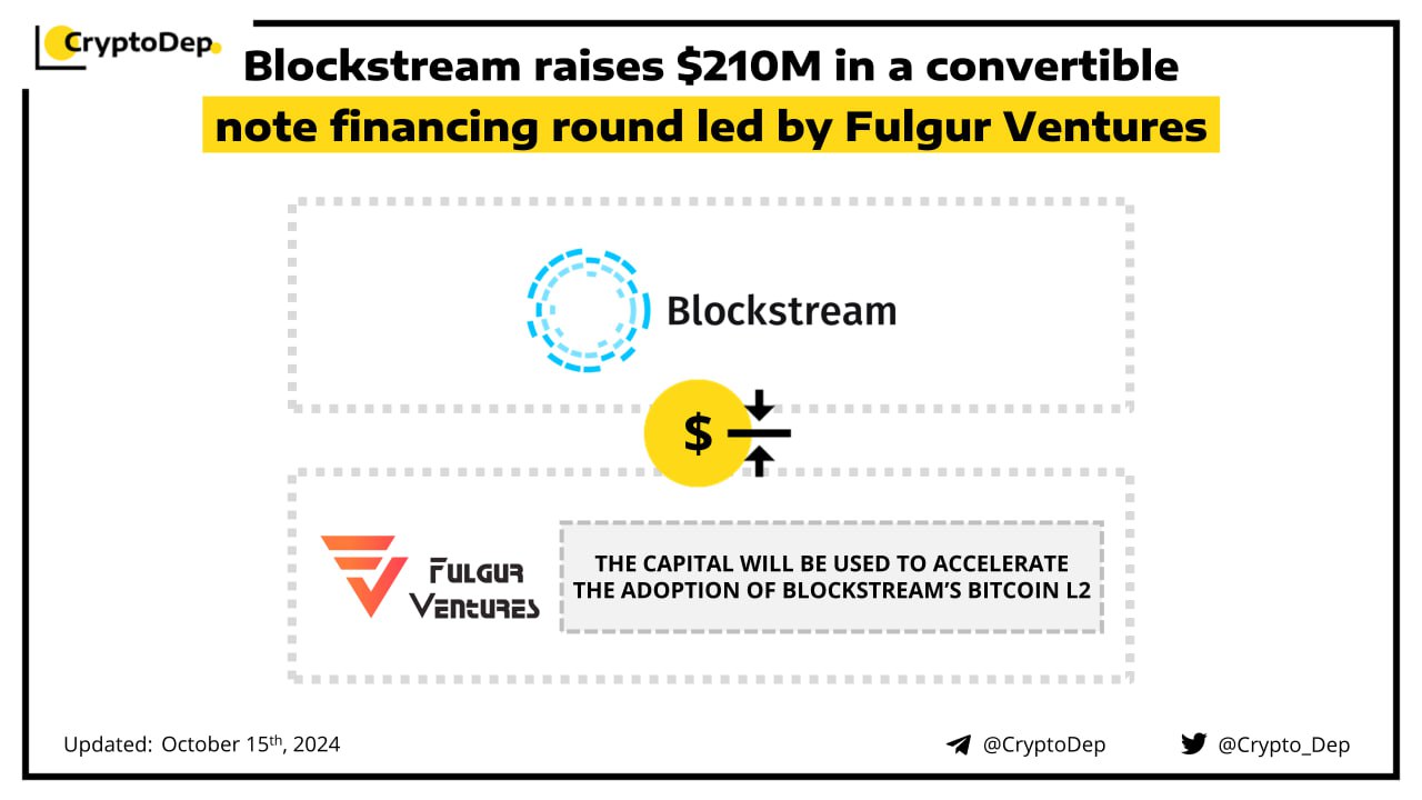 ππ» coindesk.com/business/2024/10/15/blockstream-raises-210m-in-convertible-note-financing-round