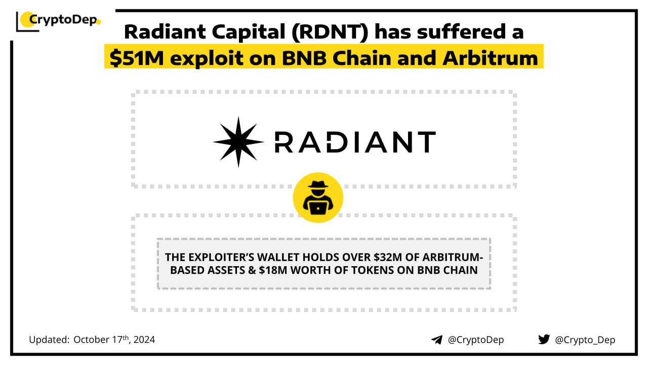 ββRadiant Capital (RDNT) has suffered a $51M exploit on BNB Chain and Arbitrum