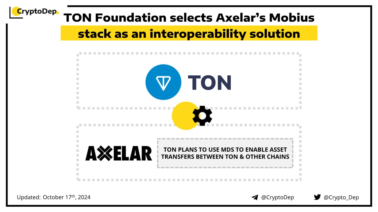 The TON Foundation will integrate Axelarβs Mobius development stack as an interoperability solution. This innovation will enable asset transfers between TON and other blockchains and to support the development of cross-chain decentralized apps. Moreover, the integration also aims to prevent fragmented liquidity, ensure that assets are not isolated on different chains, and reduce user confusion by providing a unified cross-chain experience.