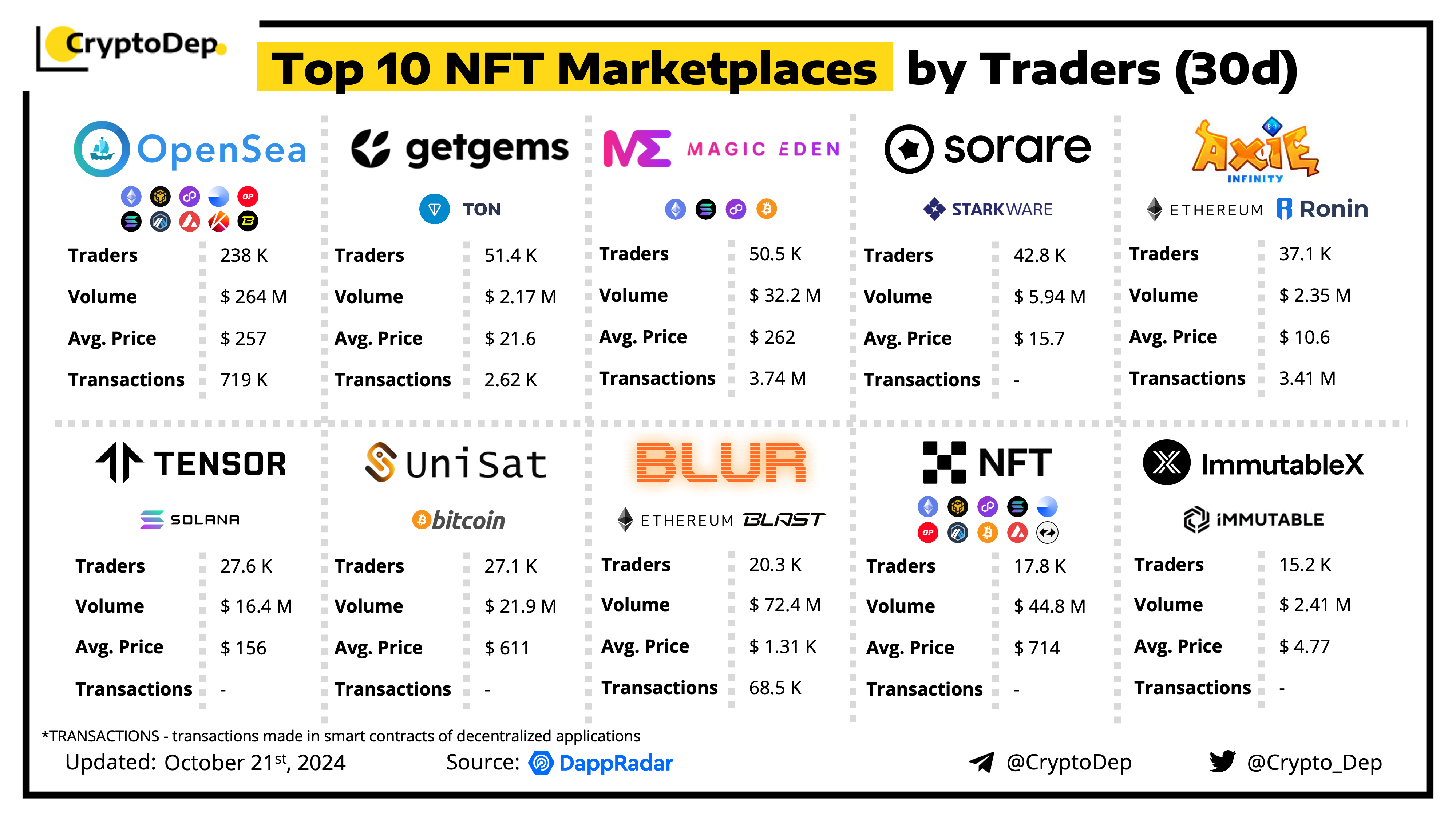 ββTop 10 NFT Marketplaces by Traders (30d)