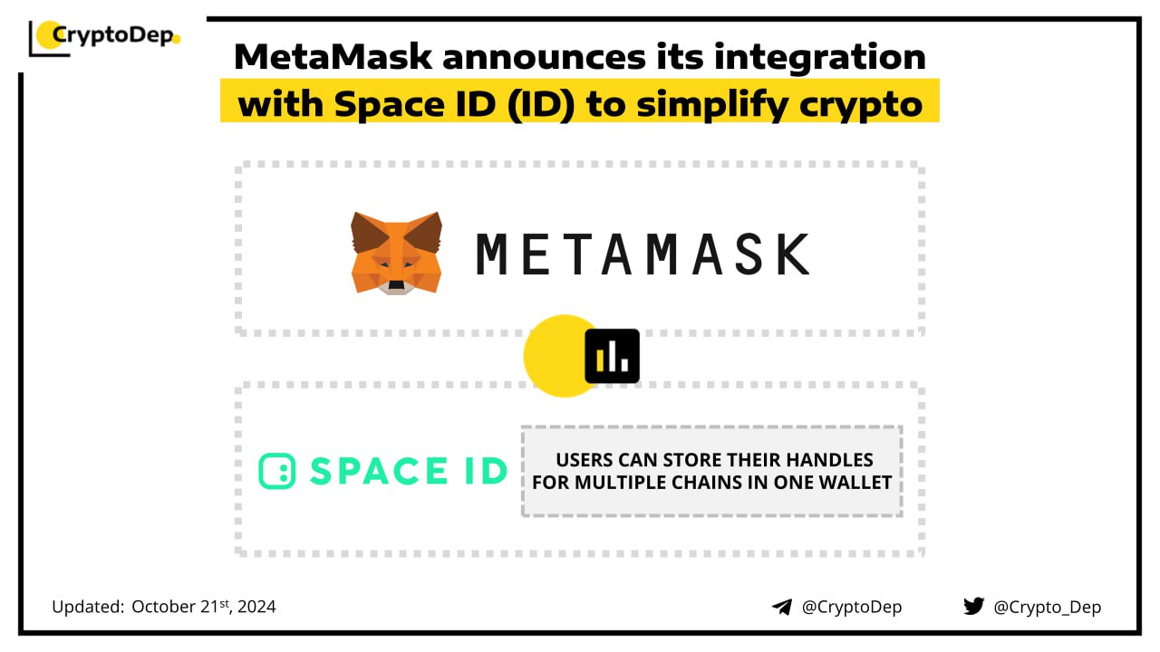 MetaMask joins forces with Space ID, a web3 domain and identity platform, to make crypto transactions and accessing wallets simpler. The integration will allow users to replace their public wallet addresses with a single, secure, and customizable handle when making transactions on MetaMask. Moreover, users will be able to organize and store their handles for multiple chains in one wallet.