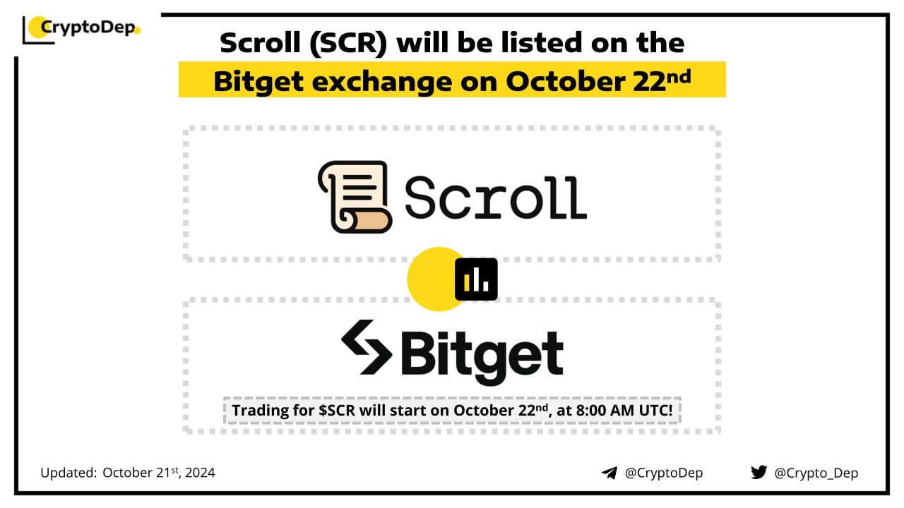 ββScroll (SCR) will be listed on the Bitget exchange on October 22nd