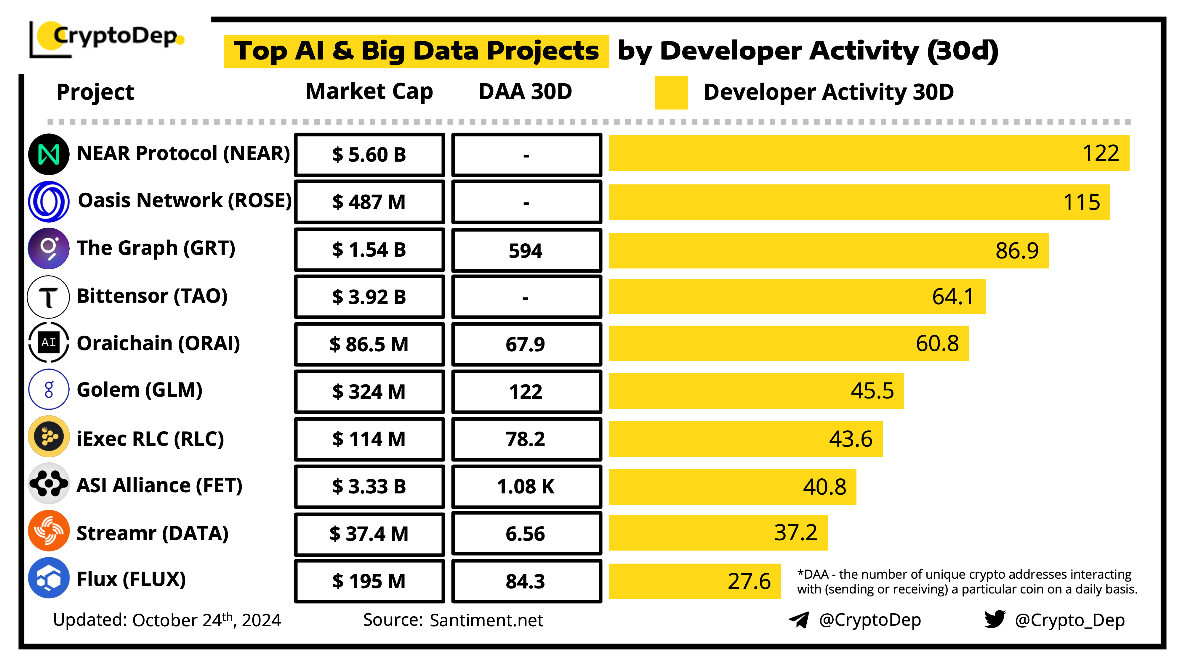 Dev.Activity - the development activity of a project done in its public Github repositories. Development Activity metrics are measured in number of Github events.