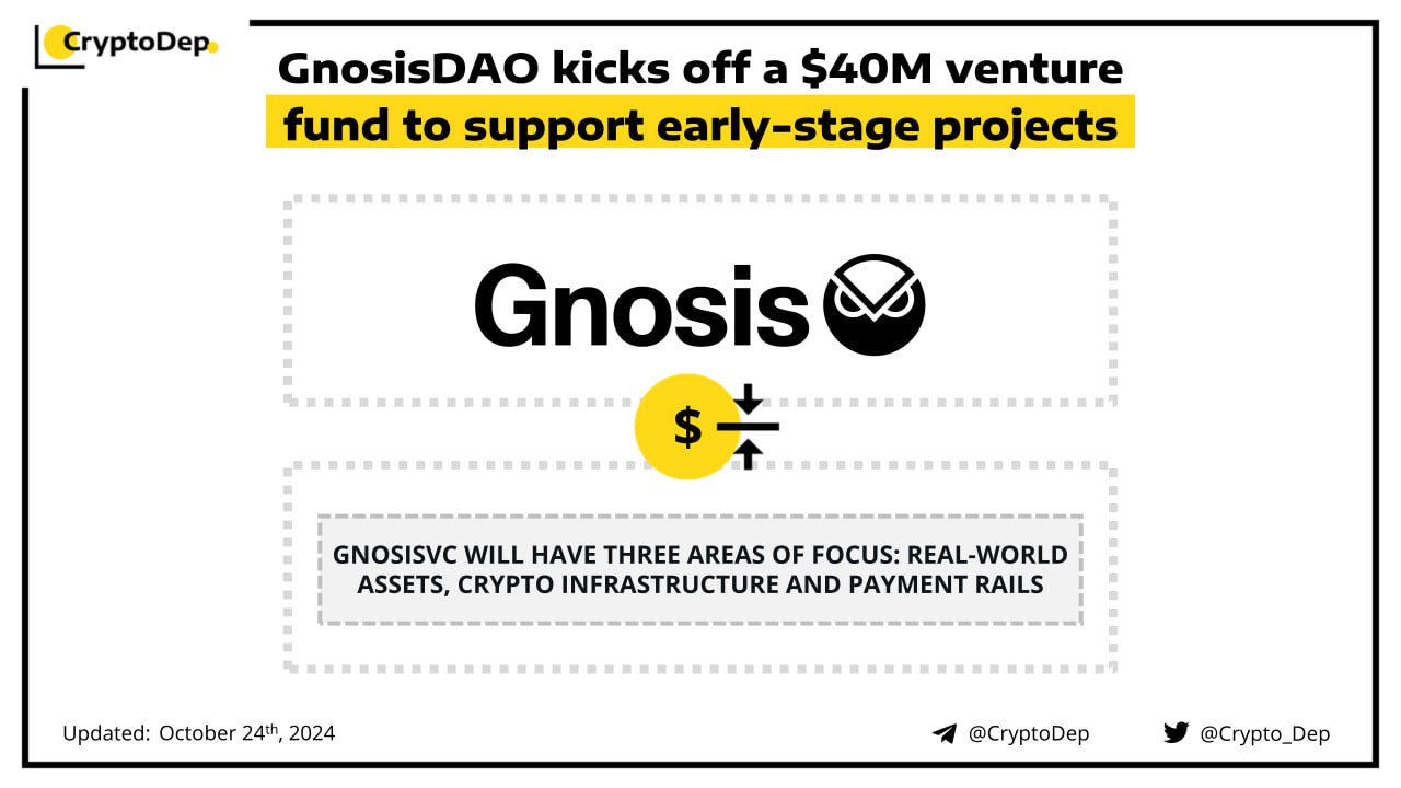 GnosisDAO has announced the launch of a $40M venture fund to support early-stage projects under the Gnosis 3.0 roadmap. The fund will have three main areas of focus, including real-world assets, crypto infrastructure, and payment rails. GnosisDAO will invest $20M in the fund while the remaining half will come from external LPs. Gnosis is an EVM-compatible Layer 1 network that extends Ethereum functionality and tooling capability.