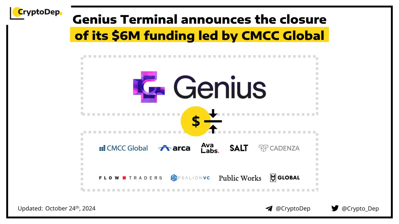 Shuttle Labs has raised $6M to contribute to Genius Terminal, a non-custodial decentralized trading platform. The round was led by CMCC Global and joined by Arca, Ava Labs, SALT, FlowTrader, Psalion VC, Cadenza, Public Works, and MV Global among others. Genius Terminal allows users to log-in with Apple, Google, Twitter etc. and have one account on BTC, TON, SUI, COSM, EVM, SVM, and other chains.
