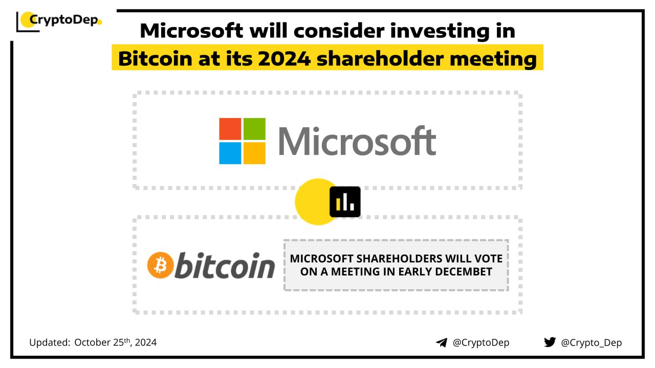 Microsoft has included a "proposal to assess investing in bitcoin" on the voting ballot for its 2024 annual shareholder meeting. The topic will be a voting item on its next shareholder meeting scheduled for December 10th. However, the company notes the board of directors recommends voting against the proposal.
