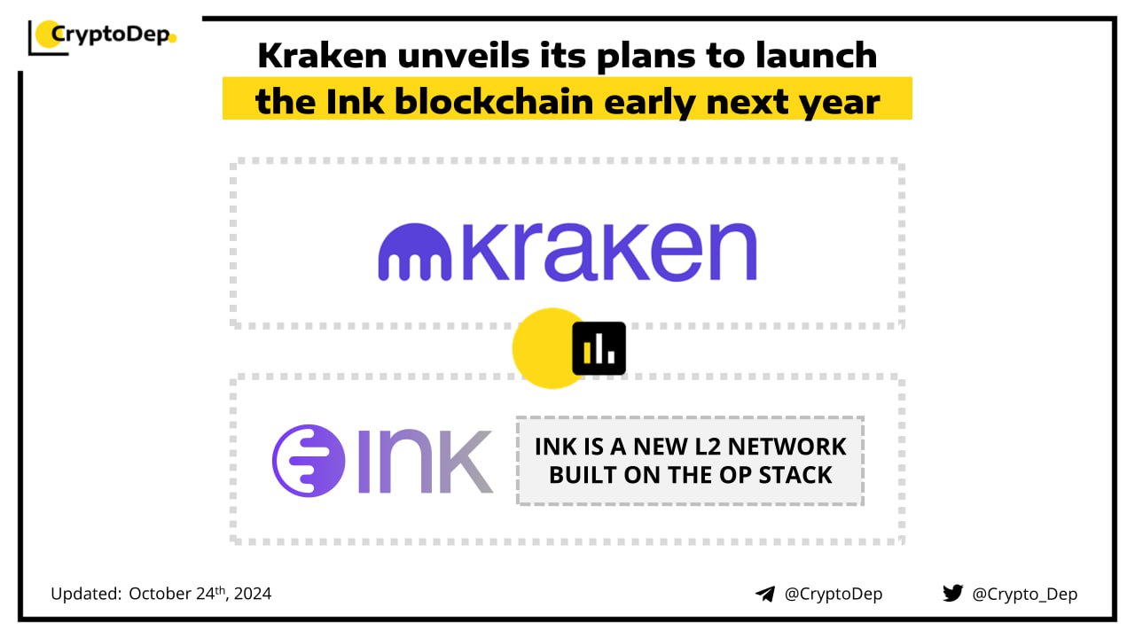 Kraken, the 6th-largest crypto exchange in the world, has introduced Ink, its own layer-2 network built on the OP stack. The network is expected to go live in early 2025 and will be focused on creating a better experience for users and builders. Moreover, the firm will launch the network's testnet later this year, allowing developers to try apps for Ink.