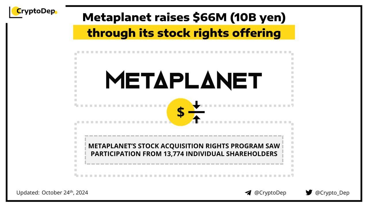 Metaplanet raises $66M (10B yen) through its stock rights offering