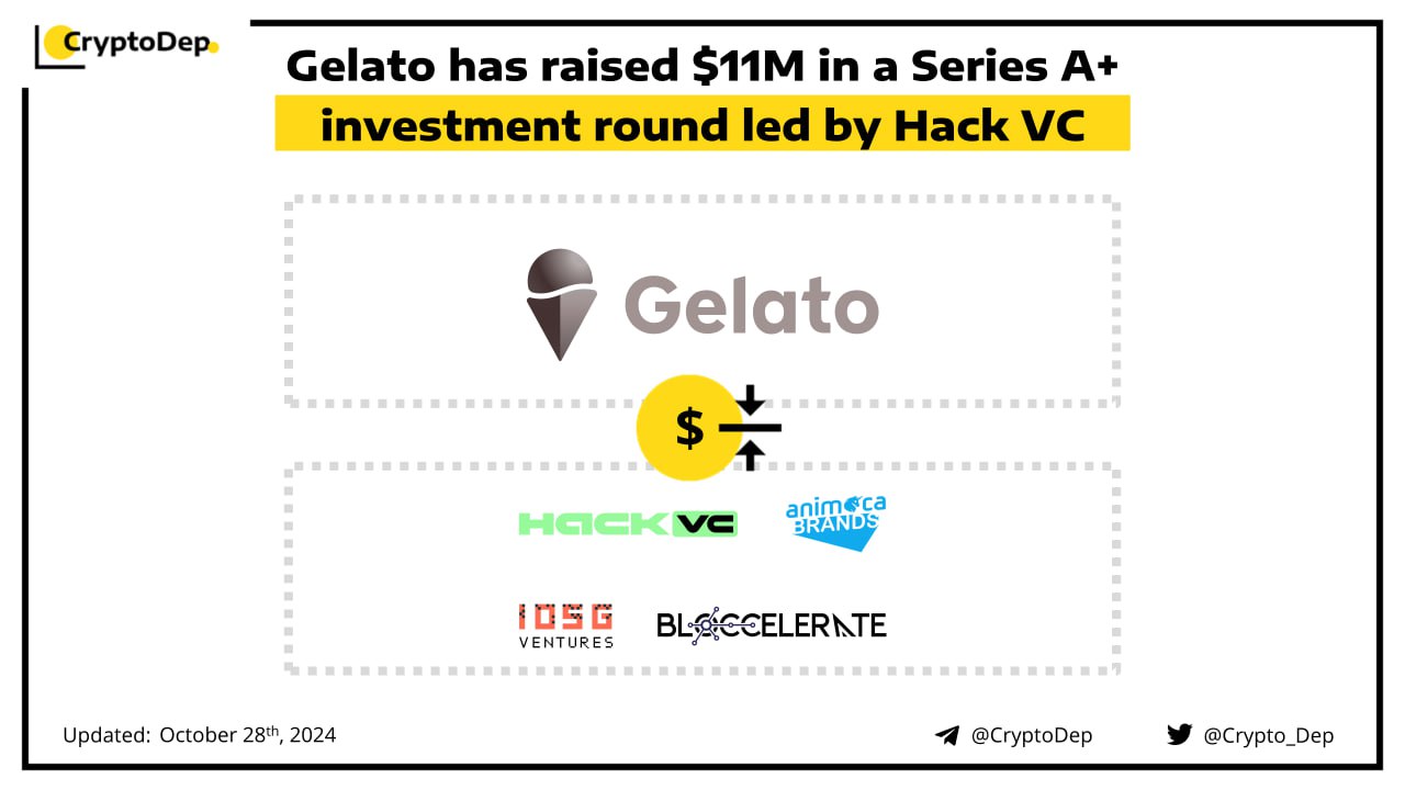 Rollup-as-a-Service platform Gelato announces the closure of its $11M Series A+ funding led by Hack VC. Additional round participants included Animoca Brands, IOSG Ventures, and Bloccelerate VC, among others. The Series A+ round was structured as a series of over-the-counter deals and brought Gelatoβs total fundraising to $23.2M, following an $11M Series A token sale round in 2021 led by Dragonfly Capital and $1.2M in earlier seed funding led by IOSG Ventures and Galaxy Digital.