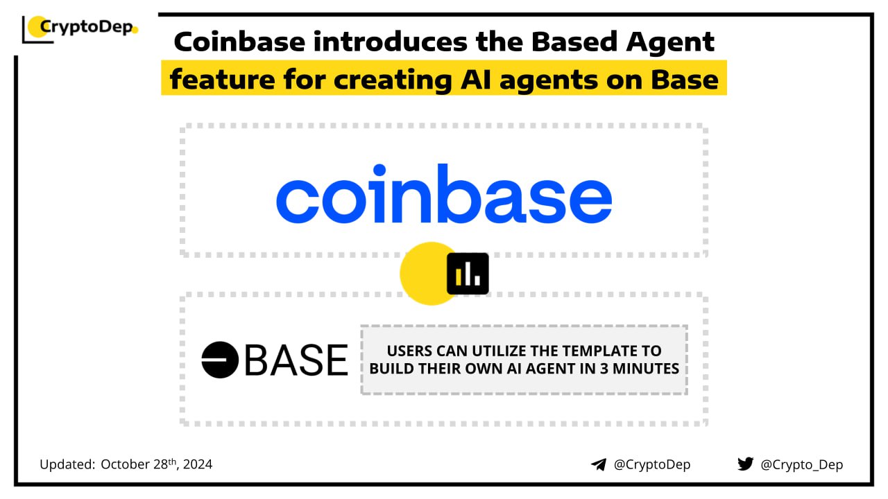 Coinbase rolls out Based Agent, a tool for creating artificial intelligence agents with a crypto wallet. This innovation allows users to set up their own AI agents on Base in under three minutes. The tool also allows AI agents to integrate with smart contracts, perform swaps, trades, and stakes, and register their own base name.