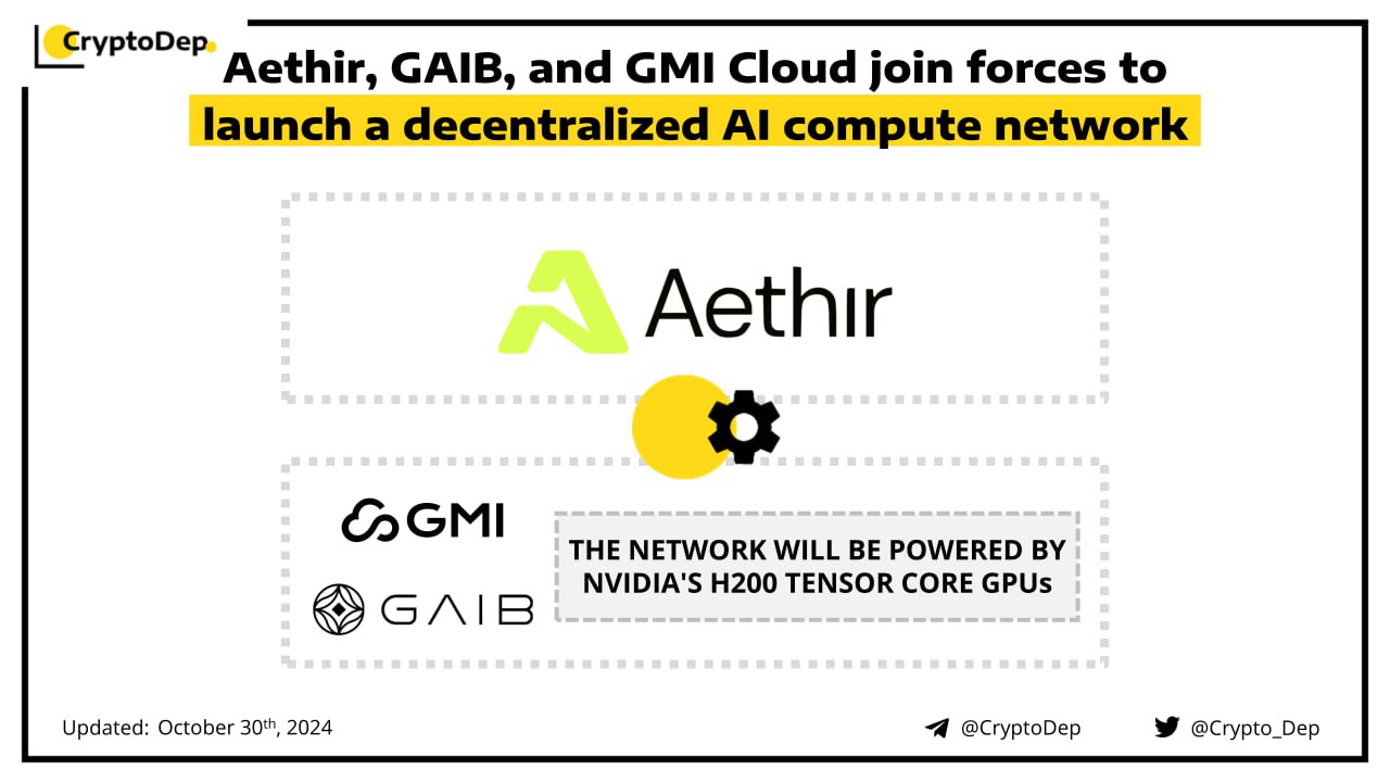 Aethir has joined forces with GAIB and GMI Cloud to introduce the first decentralized AI compute network powered by NVIDIA's cutting-edge H200 Tensor Core GPUs. The collaboration aims to accelerate the development of large-scale AI applications by providing a more accessible and cost-effective way to utilize high-performance computing resources globally. Aethir builds scalable decentralized cloud infrastructure for Gaming & AI.
