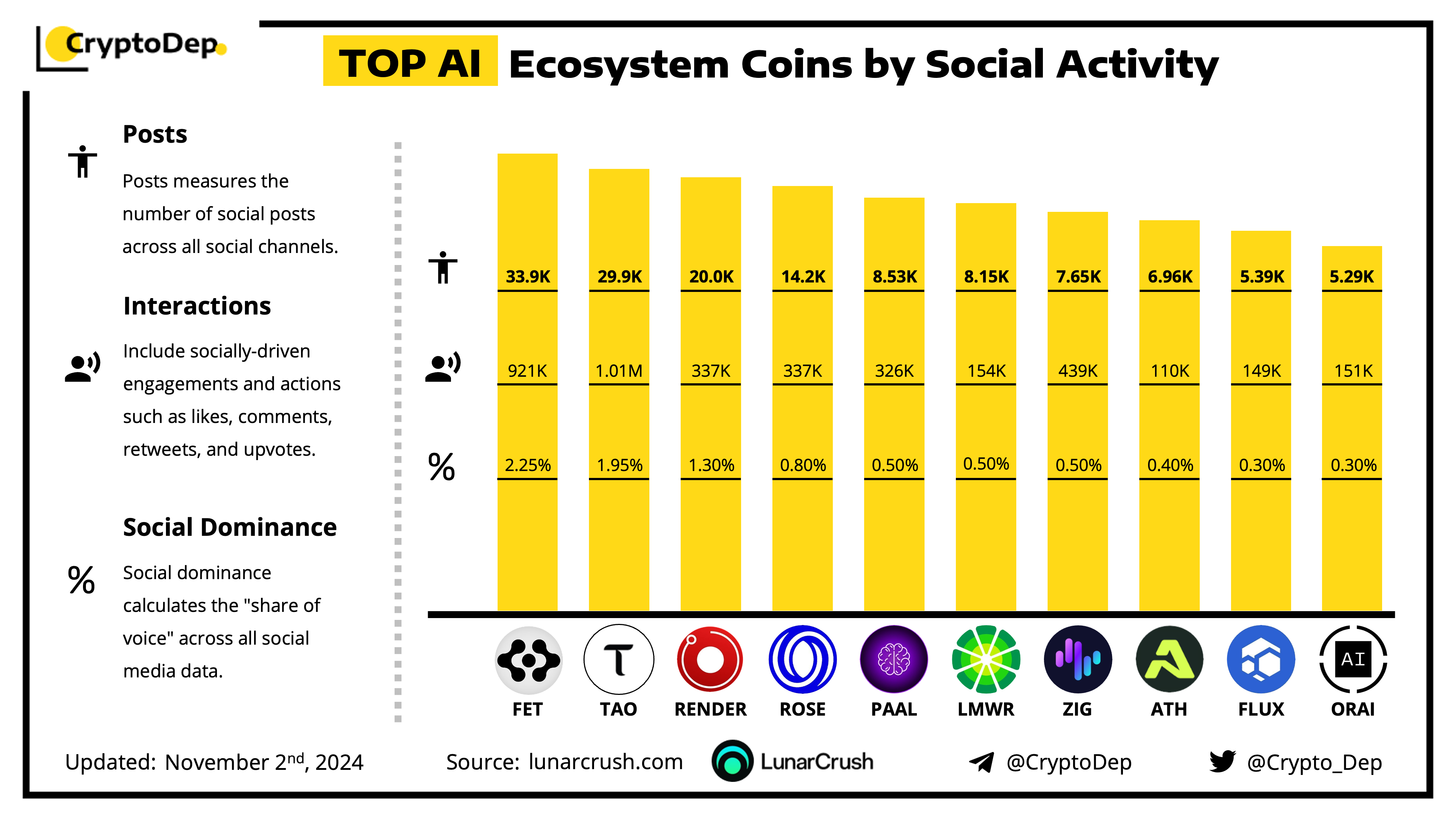 Interactions include socially-driven engagements and actions such as likes, comments, retweets, and upvotes.