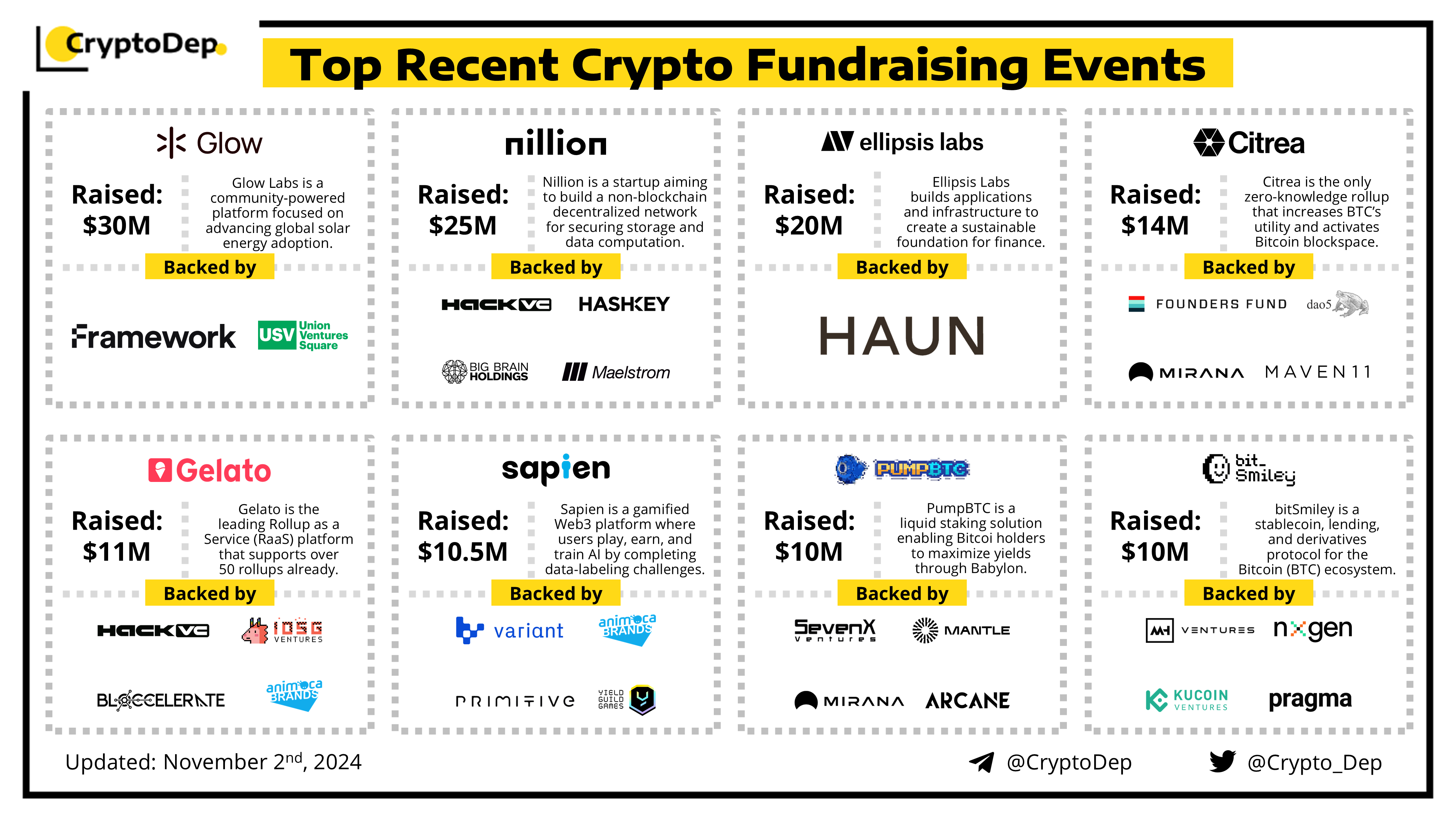 Presenting a list of some recent crypto fundraising events, backed by well-known investors such as Animoca Brands, Hack VC, Hashkey, Framework Ventures, Haun Ventures, Maelstrom, Big Brain Holdings, Founders Fund, IOSG Ventures, Variant, Mirana Ventures, and others. Let's take a look!