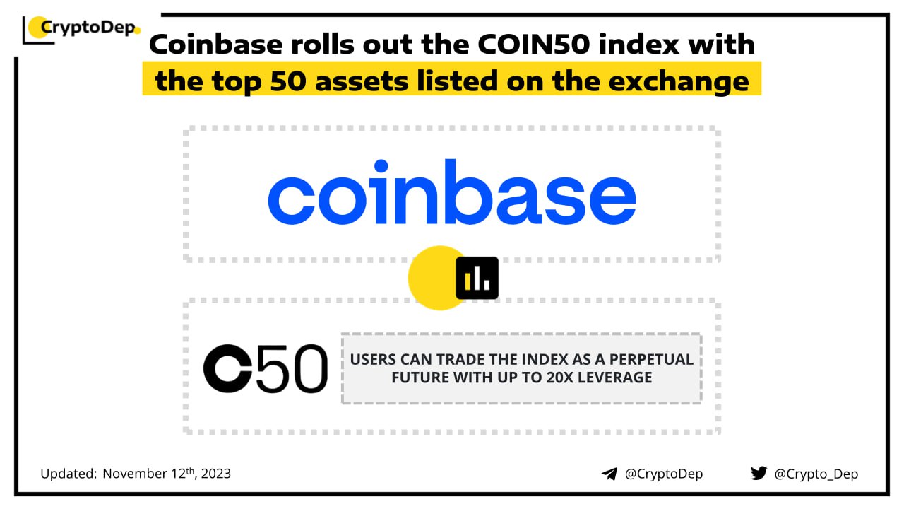 ββCoinbase rolls out the COIN50 index with the top 50 assets listed on the exchange