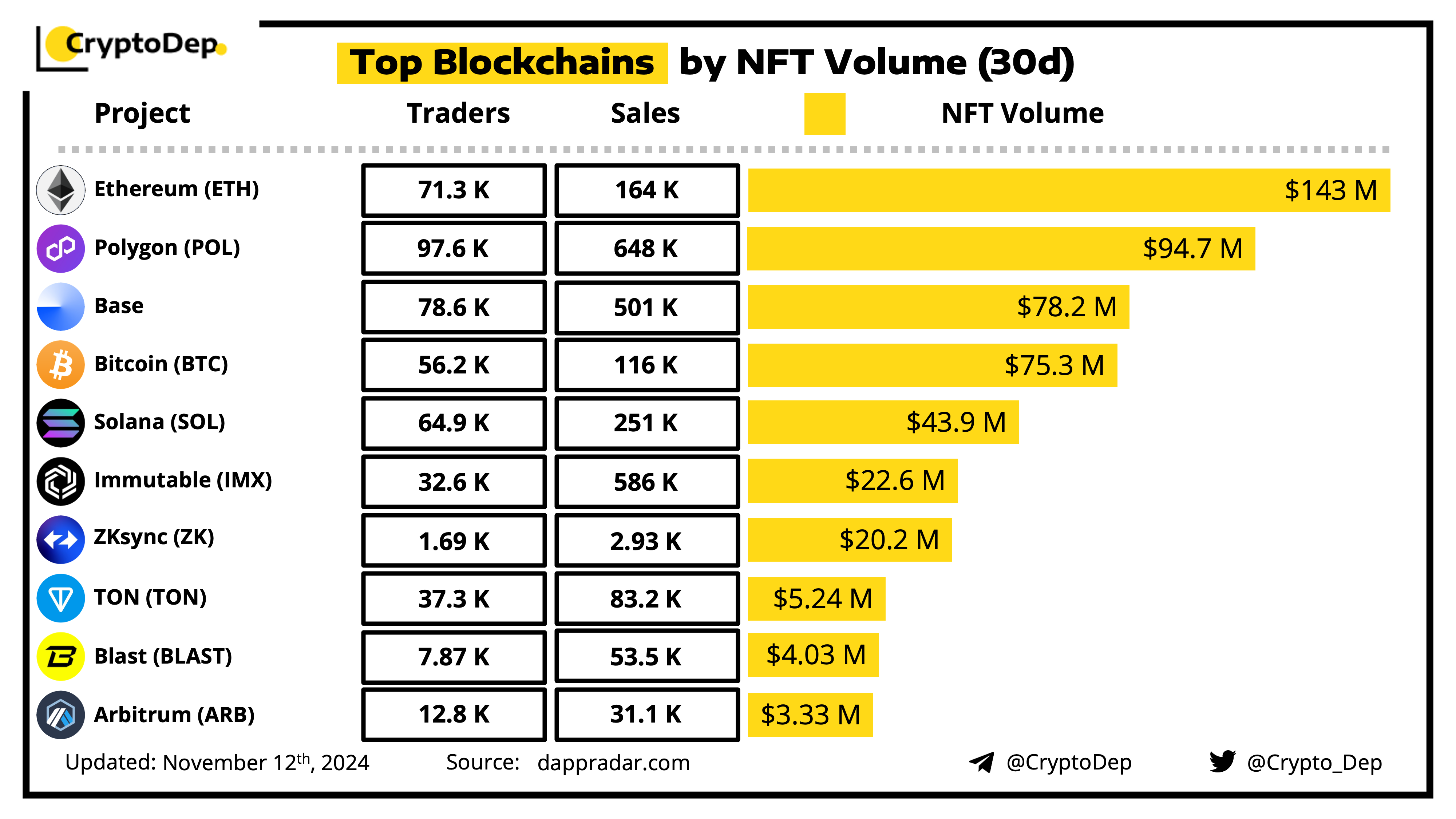 Let's explore the list of the most popular Layer 1 and Layer 2 blockchain projects by NFT volume, measuring the total NFT collections.