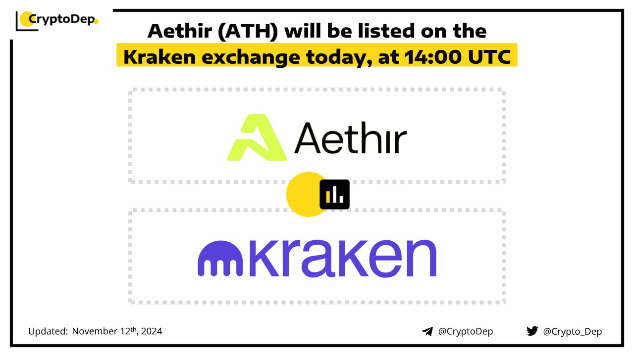 ββAethir (ATH) will be listed on the Kraken exchange today, at 14:00 UTC