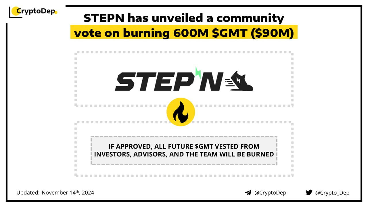 ββSTEPN has unveiled a community vote on burning 600M $GMT ($90M)