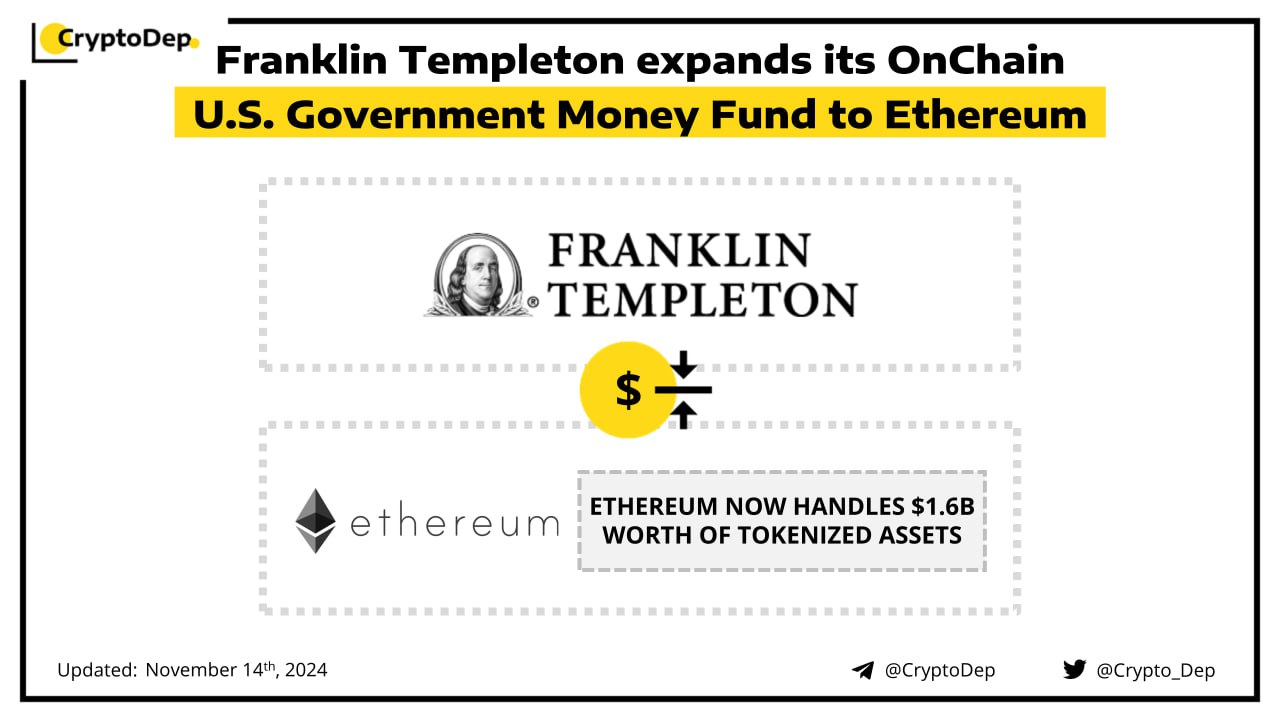 ππ» coindesk.com/business/2024/11/14/franklin-templeton-expands-410m-money-market-fund-to-ethereum-blockchain