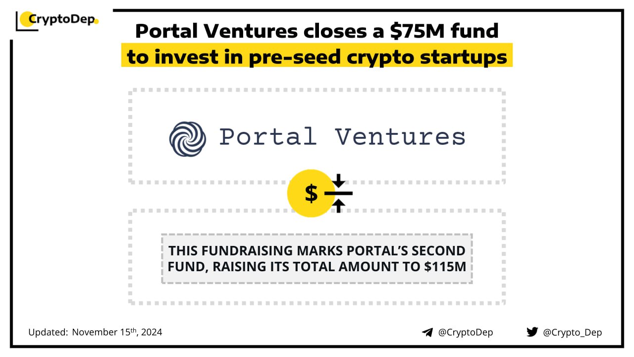 Venture firm Portal Ventures unveils its second $75M fund, which is reportedly oversubscribed and includes backers like a16zβs Chris Dixon and Marc Andreessen. The fund will be aimed at investing in pre-seed crypto startups. According to SEC filings, this will mark Portalβs second fund, raising its total amount to $115M.