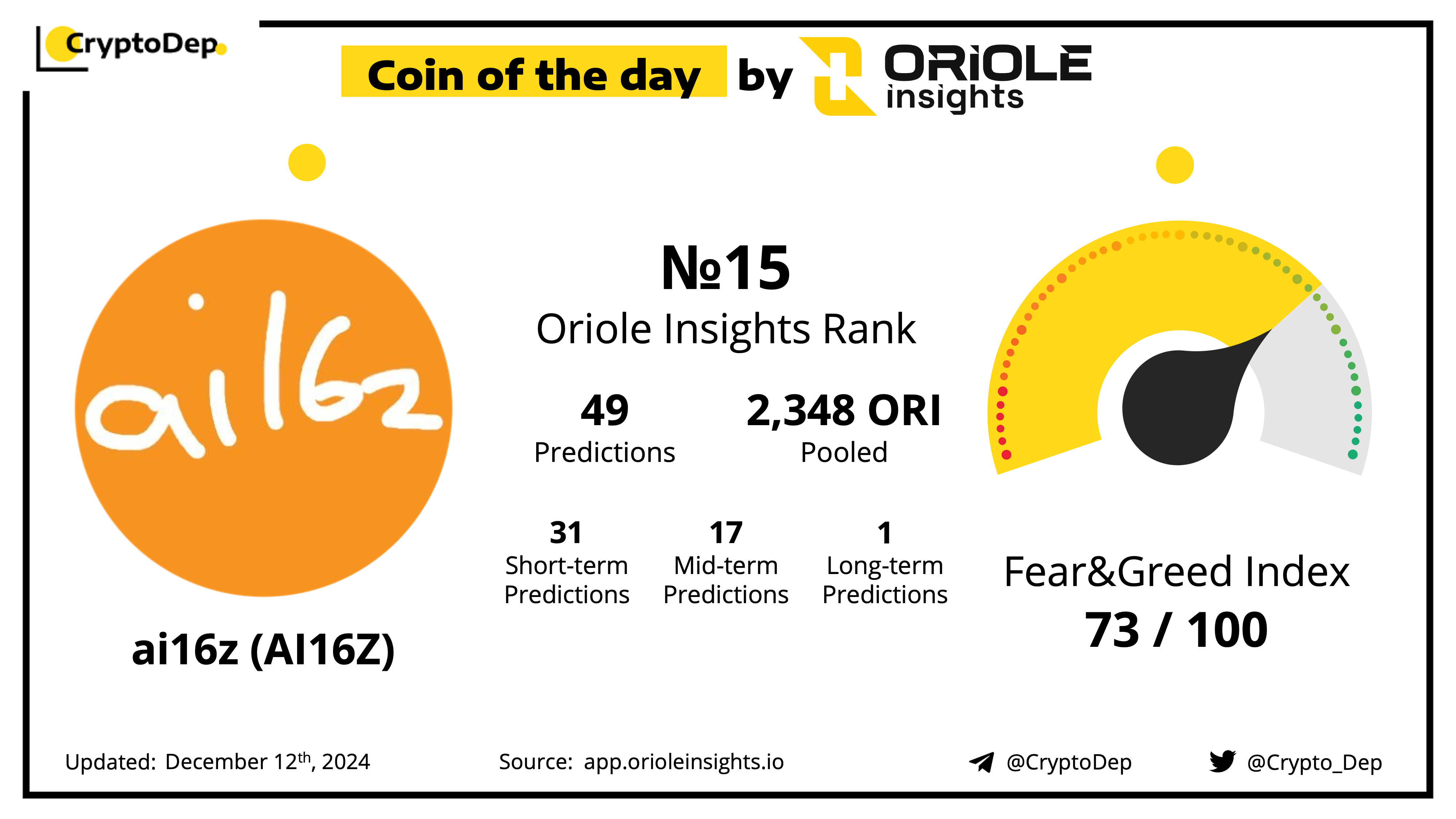 Predict AI16Z price movements on Oriole Insights