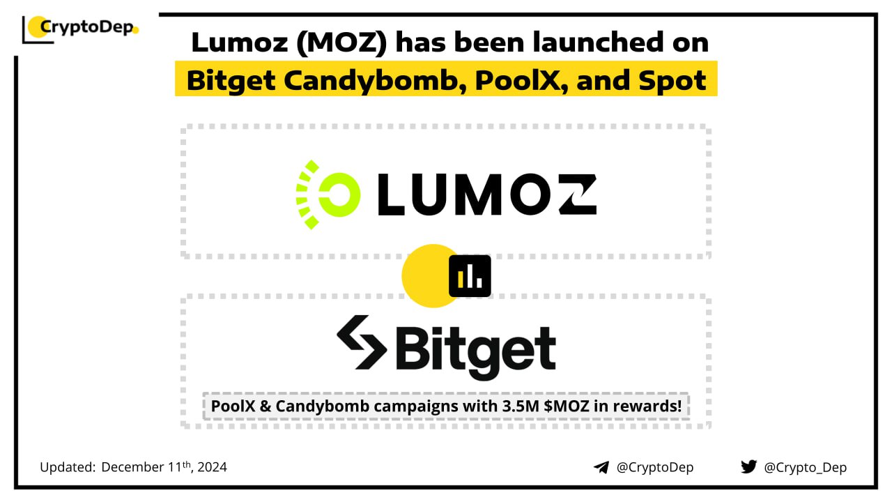 Bitget has listed $MOZ, covering multiple products, including Poolx, Candybomb, and Spot trading. The PoolX campaign with a reward pool of 2M $MOZ is now live. Moreover, the users will be able to participate in the Candybomb event and grab a share of 1.5M tokens. Lumoz is a modular compute layer & RaaS for ZK & AI.