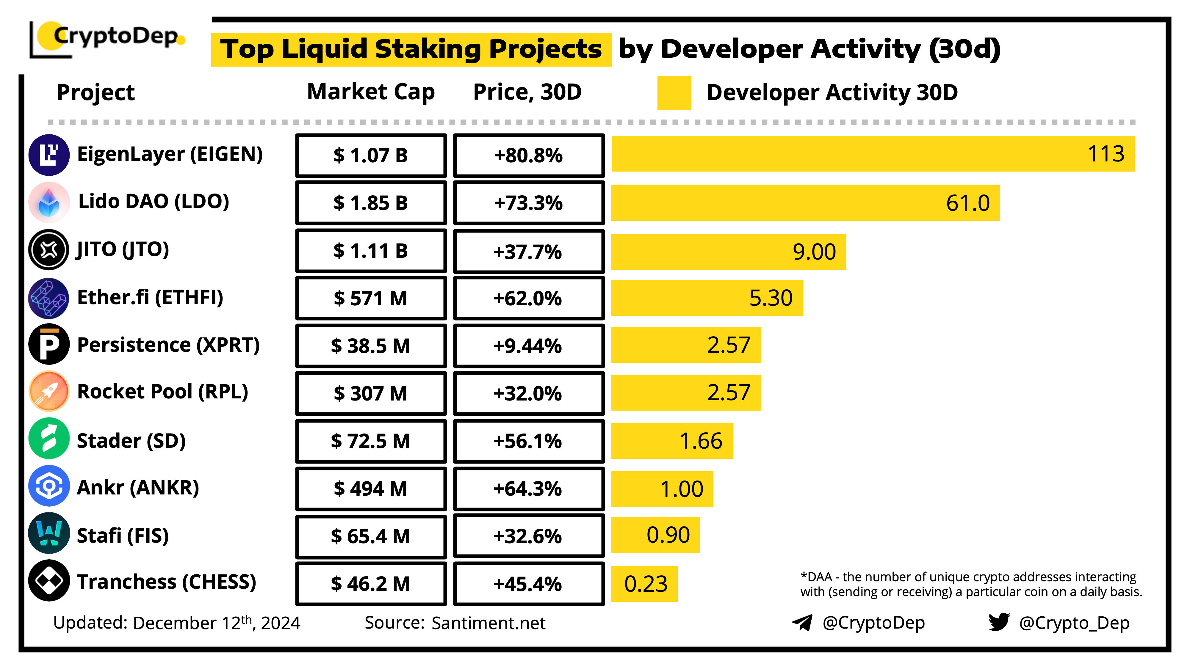 ββTop Liquid Staking Projects by Developer Activity (30d)