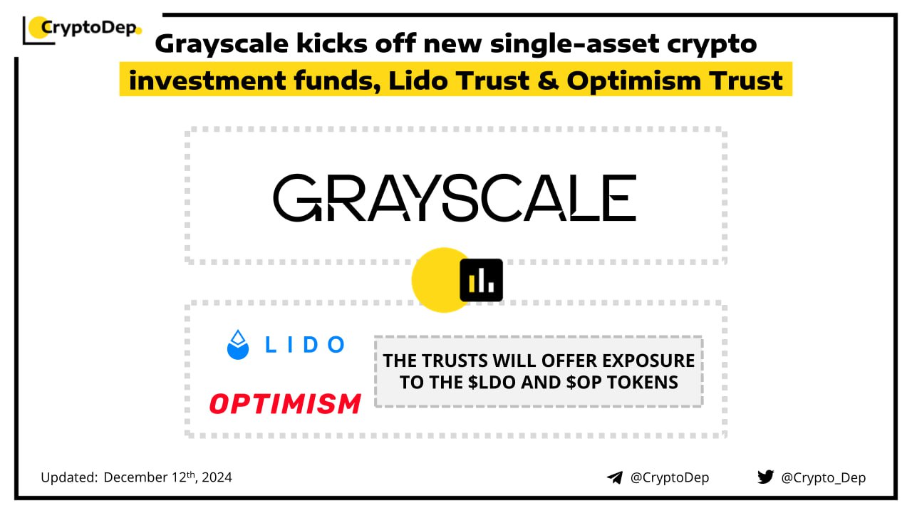 Grayscale has announced the launch of two new single-asset crypto investment funds, Grayscale Lido Trust and Grayscale Optimism Trust. The trusts offer exposure to $LDO and $OP, Lido's governance token, and the governance token for the OP collective. Grayscale Investments is the worldβs largest crypto asset manager.