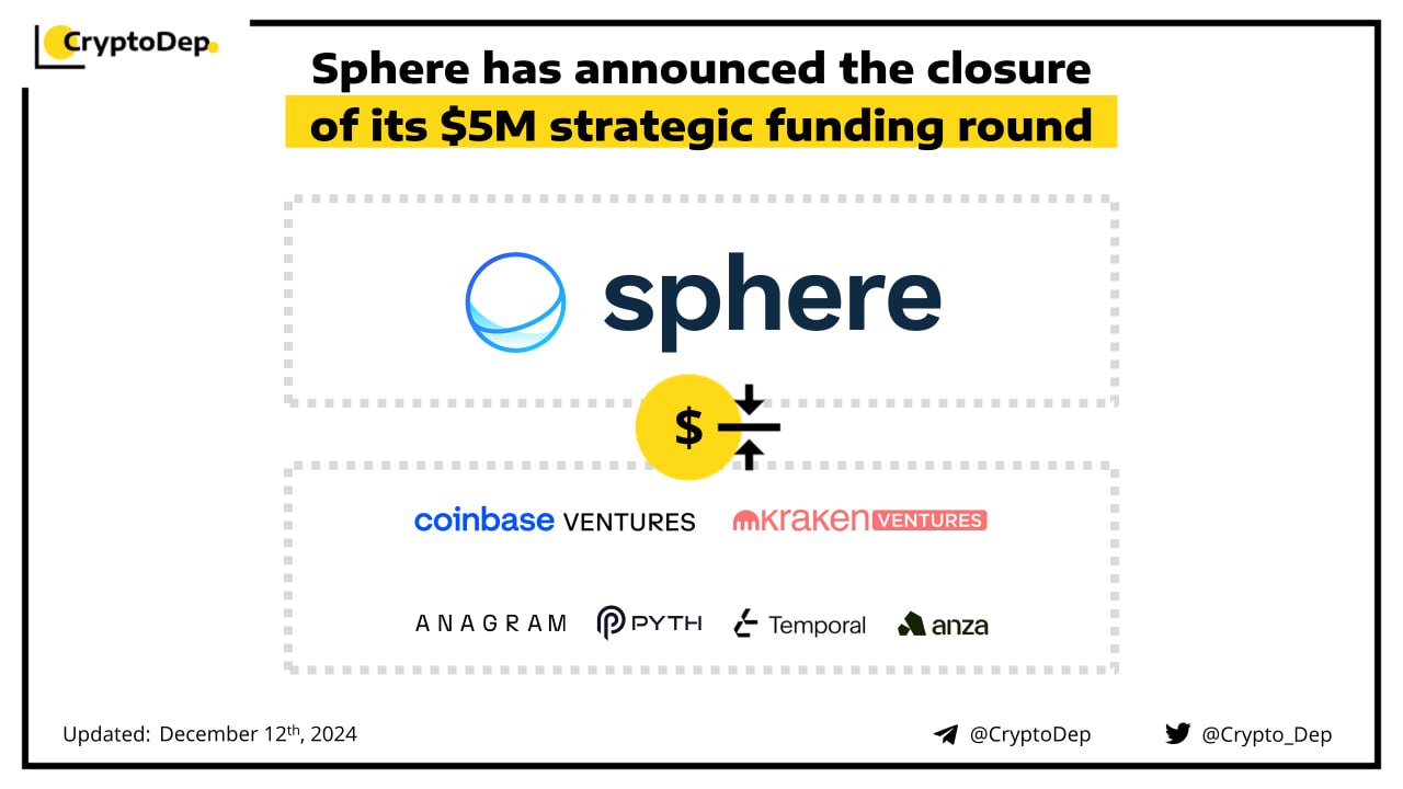 Sphere, a stablecoin company that specializes in cross-border payments, raises $5M in a round co-led by Coinbase Ventures and Kraken Ventures. Among additional round participants are Pyth, Temporal, Anagram, Stakeholder, and echo. Sphere offers various software and systems solutions to help businesses streamline their payments.