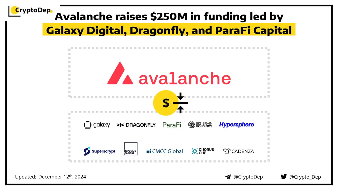 ββAvalanche raises $250M in funding led by Galaxy Digital, Dragonfly, and ParaFi Capital