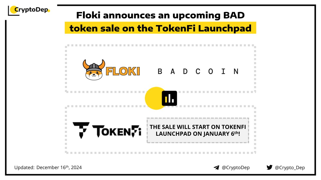 Floki will support the launch of BAD, an AI Agent Launchpad Protocol that will launch exclusively on BNB Chain. The $BAD presale will take place on the TokenFi Launchpad, on January 6th. Users will be able to participate in the sale by staking $TOKEN through the TokenFi Supercharger program. Participants will be divided into 6 tiers, depending on the staked $TOKEN amount. Moreover, 35% of the total BAD token supply will be airdropped to the Floki Ecosystem.