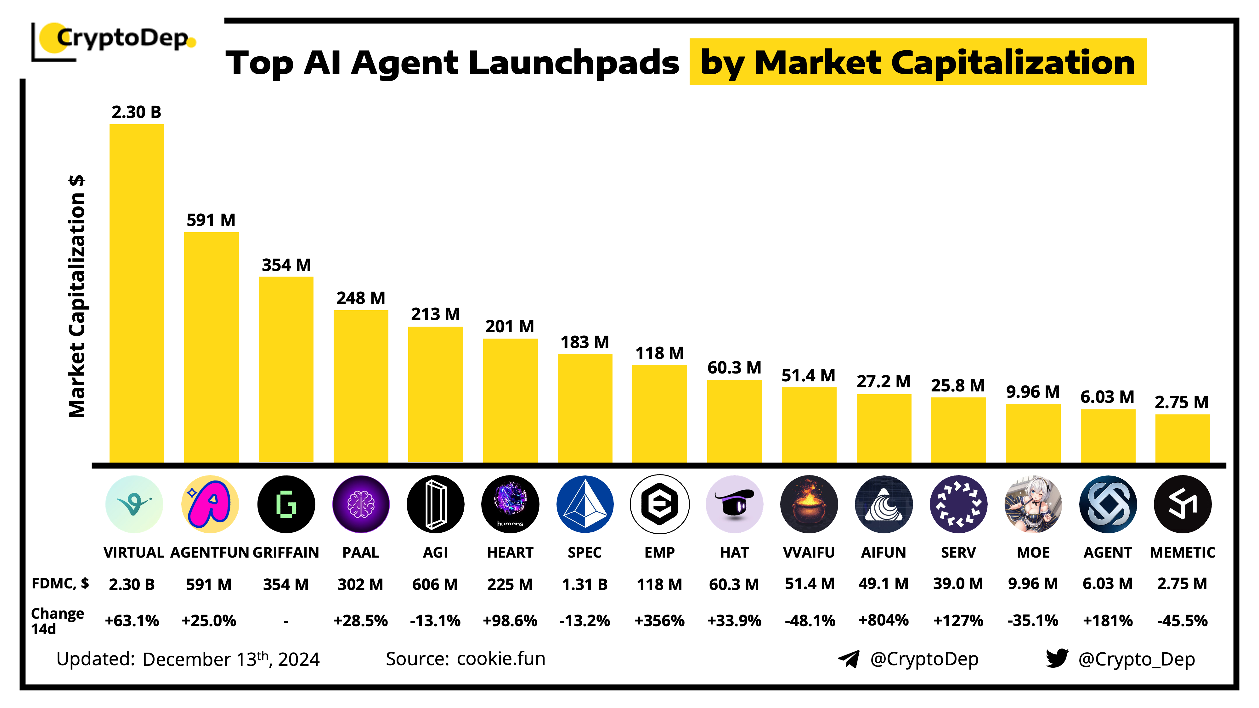 ββTop AI Agent Launchpads by Market Capitalization