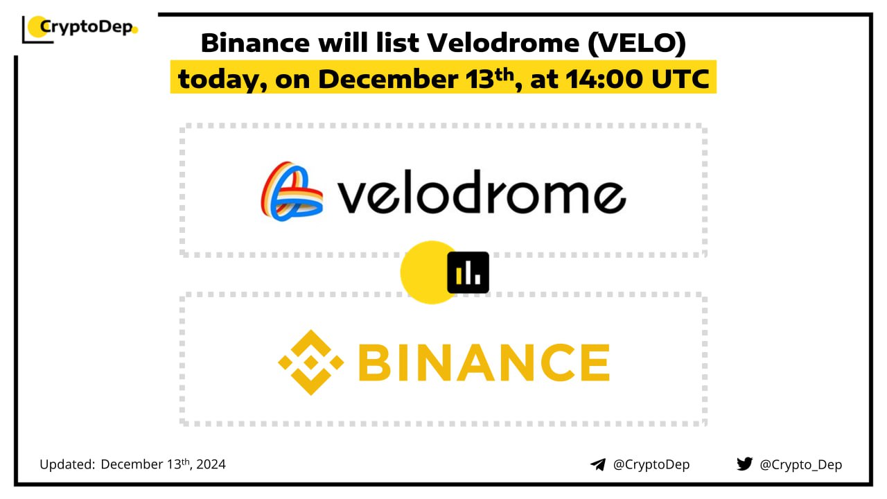 ββBinance will list Velodrome (VELO) today, on December 13th, at 14:00 UTC