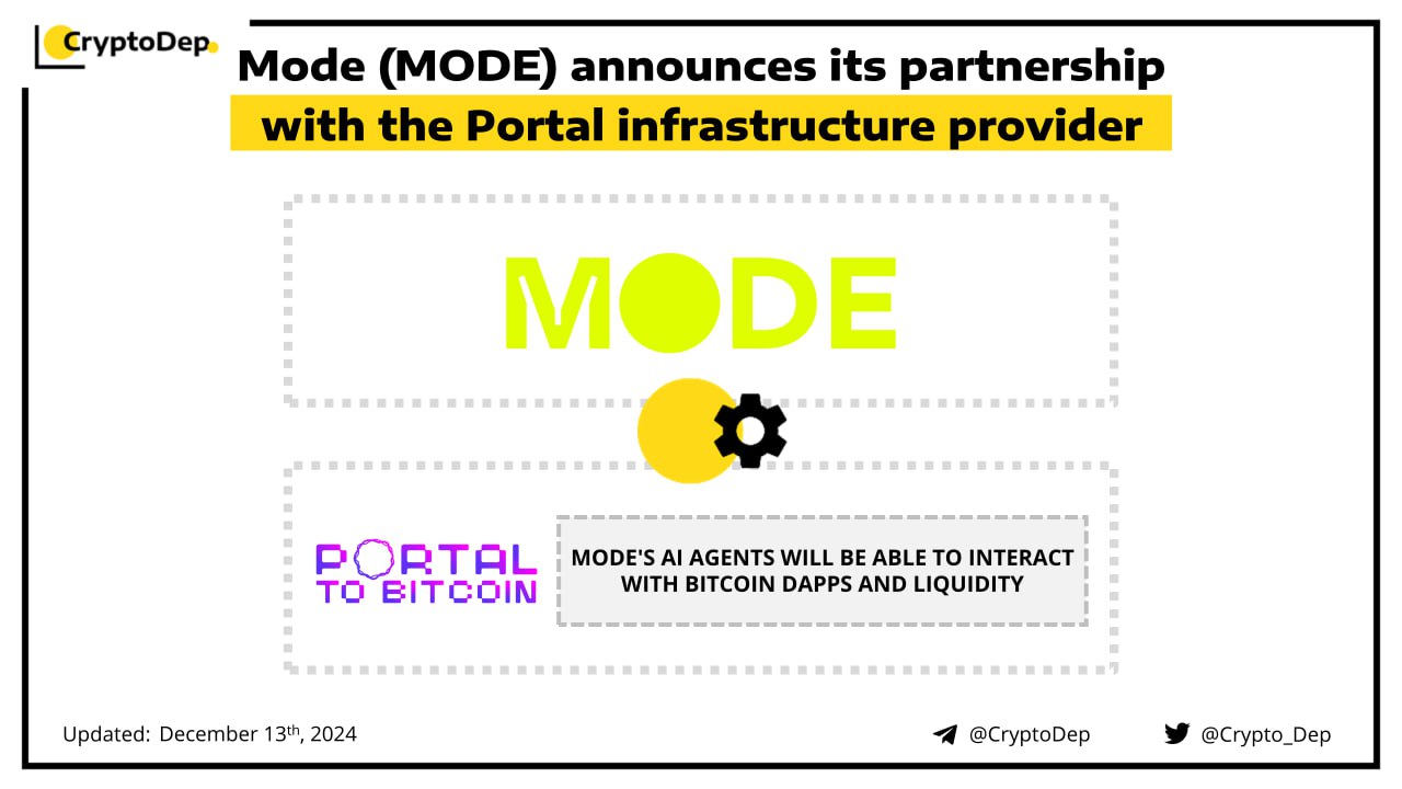 Mode joins forces with Portal, a cross-chain infrastructure for Bitcoin. Through this integration, Mode's AI Agents can seamlessly interact with Bitcoin dApps and liquidity. Earlier in December, Mode launched Synth, a Bittensor subnet for synthetic data to power price forecasting for Agents and LLMs. Mode is the Layer 2 (L2) building at the intersection of DeFi and AI.