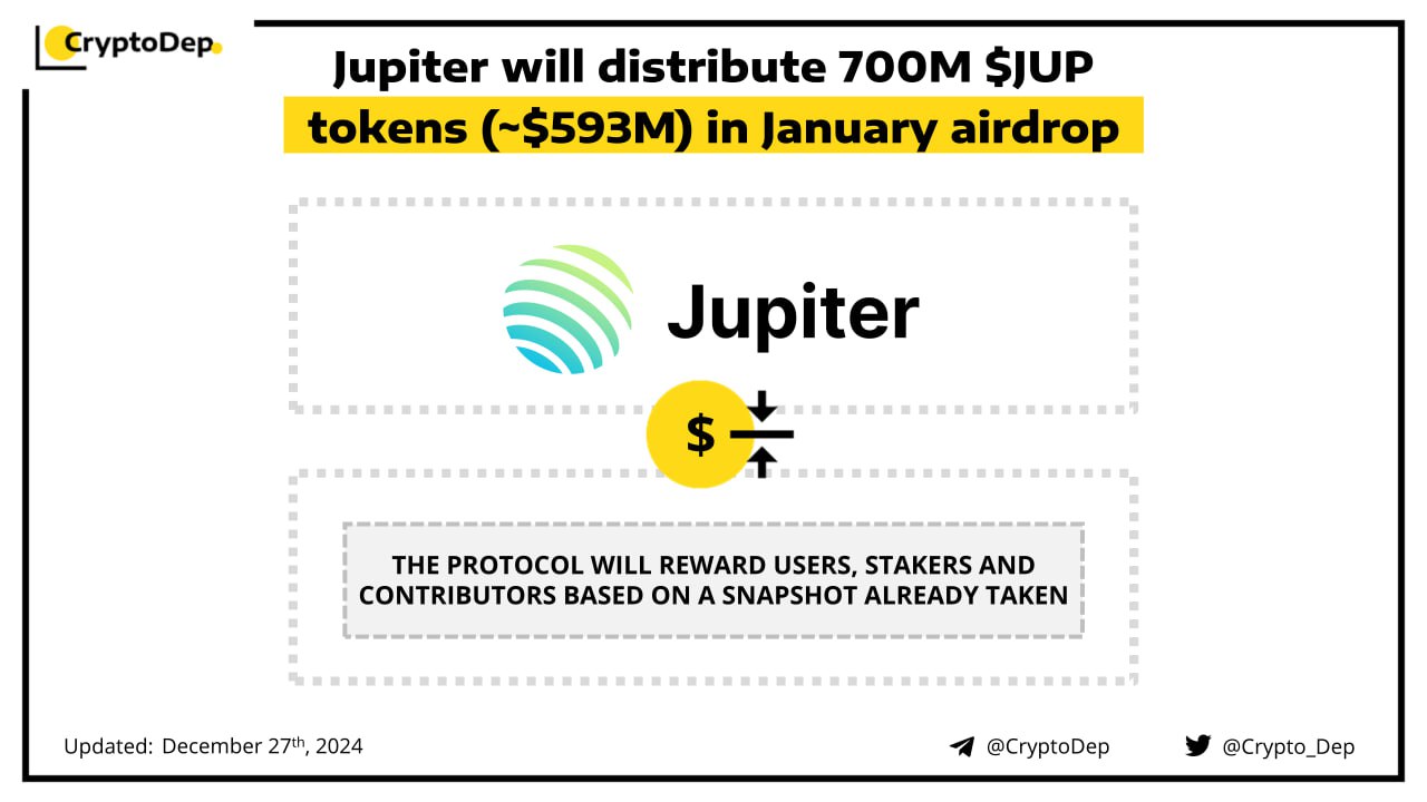 ββJupiter will distribute 700M $JUP tokens (~$593M) in January airdrop