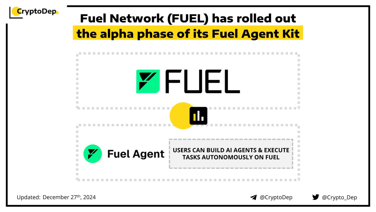 Fuel Network introduces Fuel Agent Kit, for users to build AI agents and execute tasks autonomously on Fuel. The solution allows devs to connect their AI agents to Fuel and various apps on Fuel, or build a new AI agent using Fuel. Among Fuel Agent Kit's capabilities are transfers, swaps and liquidity provision on Mira Protocol, collateral supply, and asset borrowing on Swaylend. Moreover, Fuel plans to make it model-agnostic beyond OpenAI and introduce more tools. Fuel is an operating system purpose-built for Ethereum rollups, backed by Blockchain Capital, Stratos, CoinFund, Spartan, Fenbushi Capital, and others.