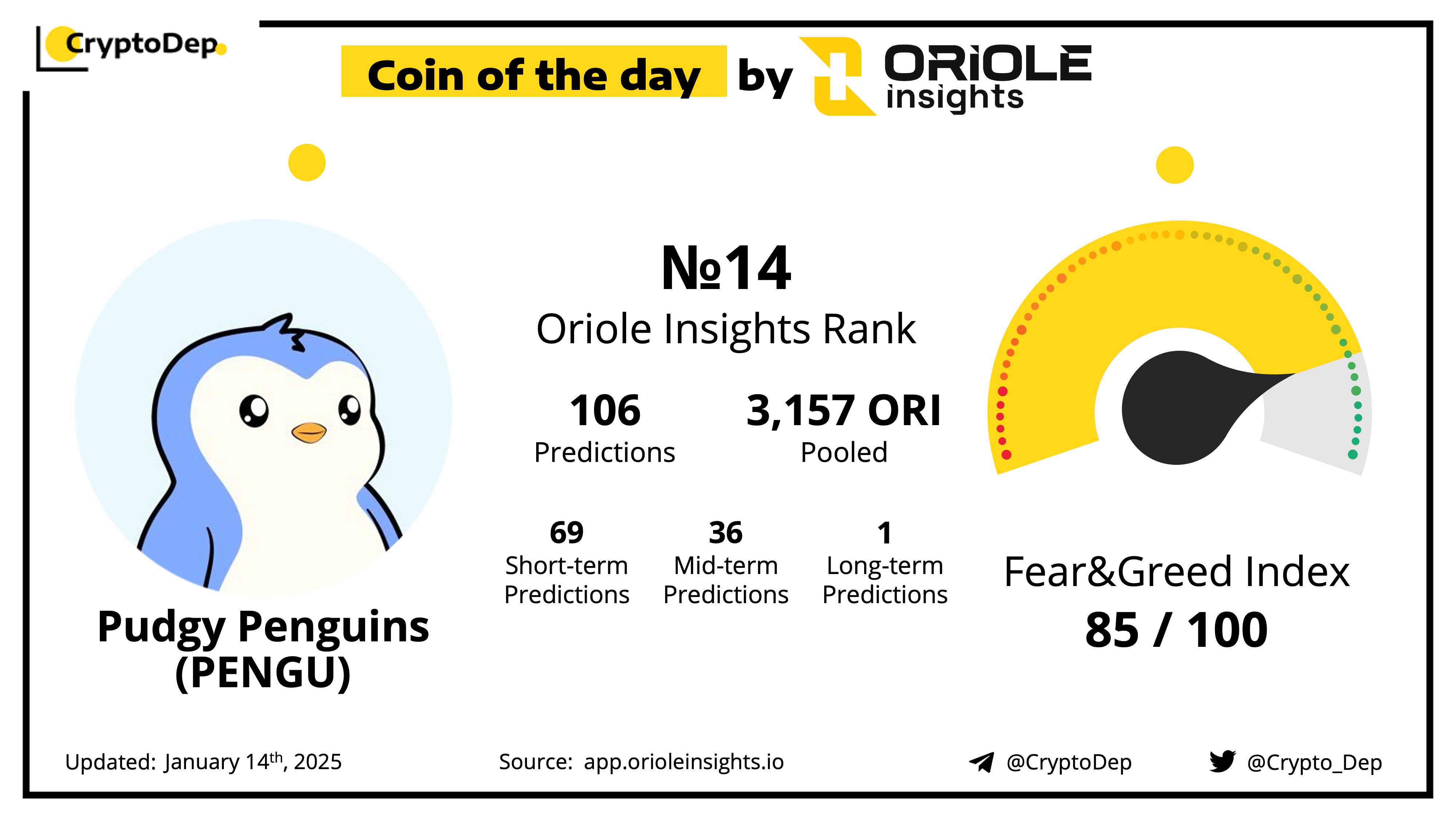 Predict PENGU price movements on Oriole Insights