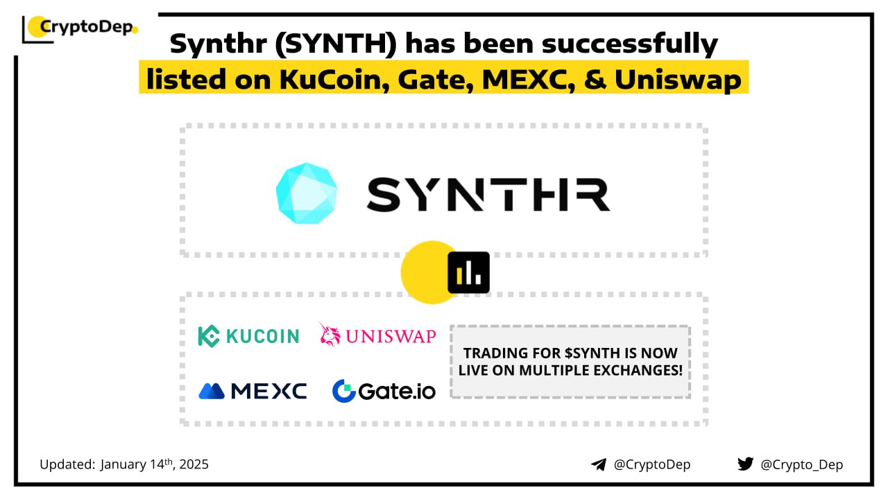 Synthr (SYNTH) has been successfully listed on KuCoin, Gate, MEXC, & Uniswap