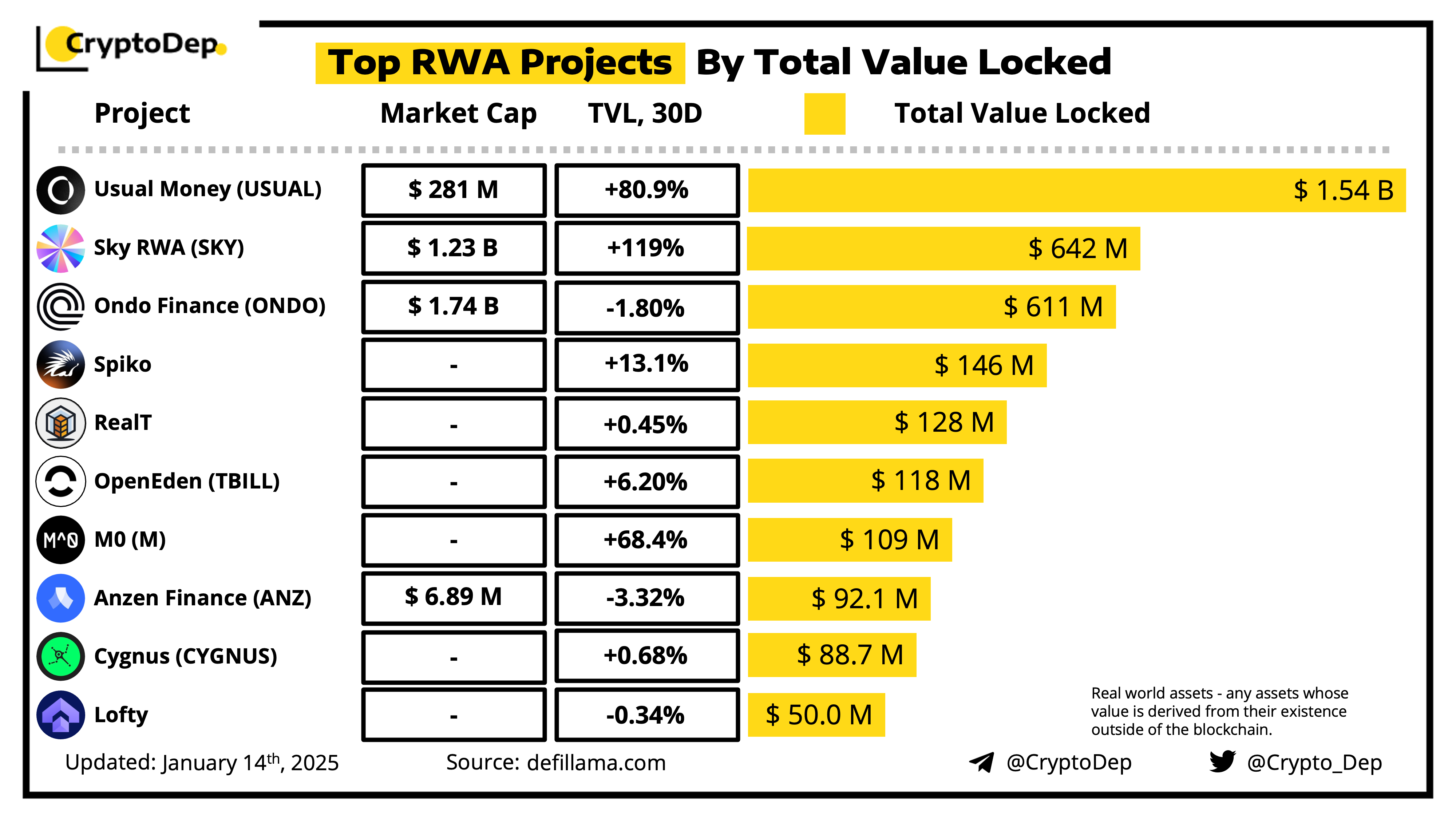 Real World Assets (RWAs) became one of the most hyped narratives of current market momentum. Let's explore the leading RWA projects ranged by TVL.