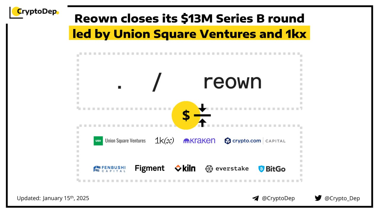 Reown, builders of the WalletConnect Network, has raised $13M in Series B investment, bringing its total funding to $38M. The round was led by Union Square Ventures and 1kx with additional participation from Global Digital Asset Holdings, Shopify Ventures, Kraken Ventures, Crypto.com Capital, Figment, Kiln, Everstake, BitGo Ventures and Fenbushi. The firm plans to use the new financing to further develop the onchain UX platform through its SDKs, Reown AppKit and Reown WalletKit.