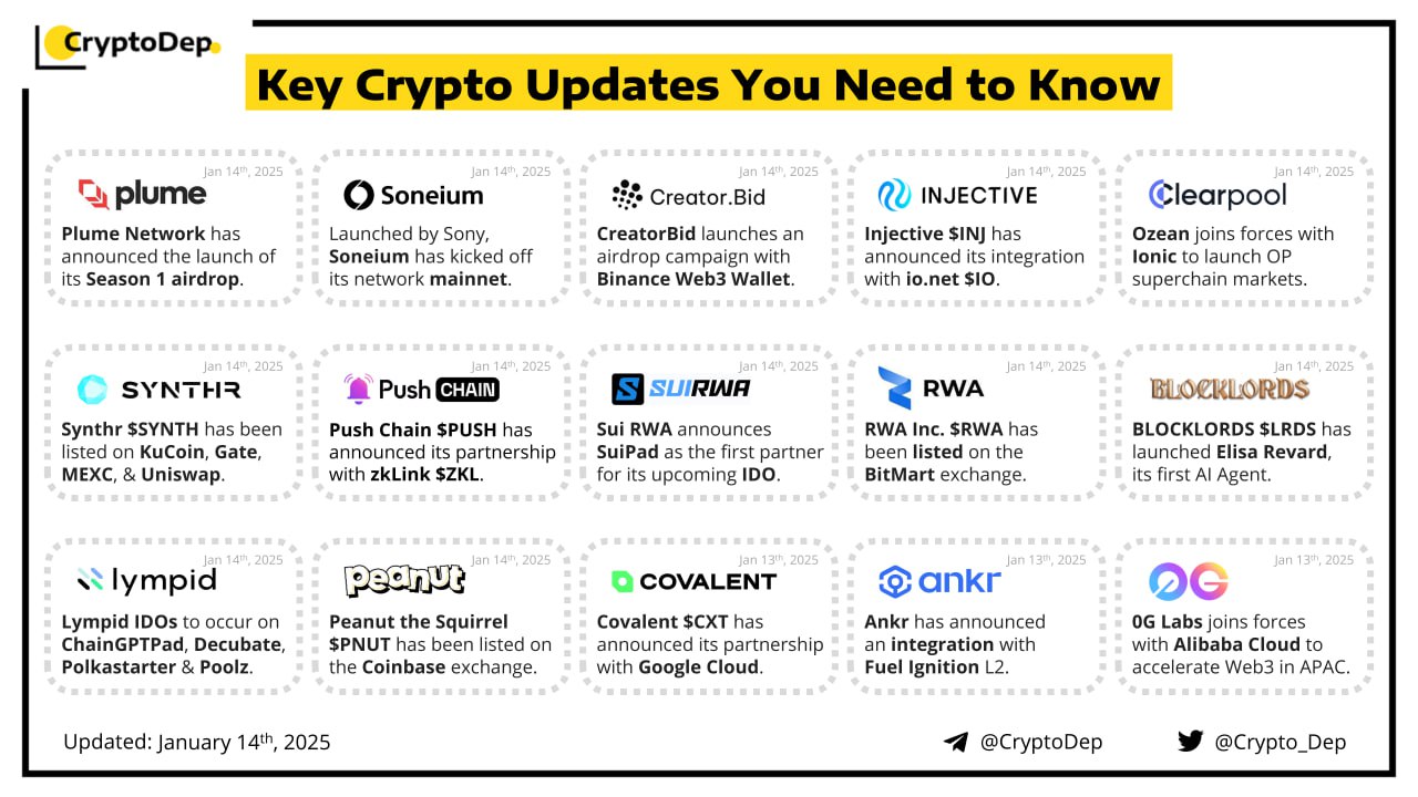 Plume Network kicks off the registration for the inaugural season of the $PLUME airdrop. Registration is open now until January 18th, 17:00 UTC. The first airdrop season will reward early adopters, testnet users with miles, active community members, pre-deposit stakers and global community members. Eligible users will be able to check their allocation and claim via CEX or onchain. Plume is a modular L2 blockchain dedicated for all real-world assets (RWAs) that integrates asset tokenization and compliance providers directly into the chain.