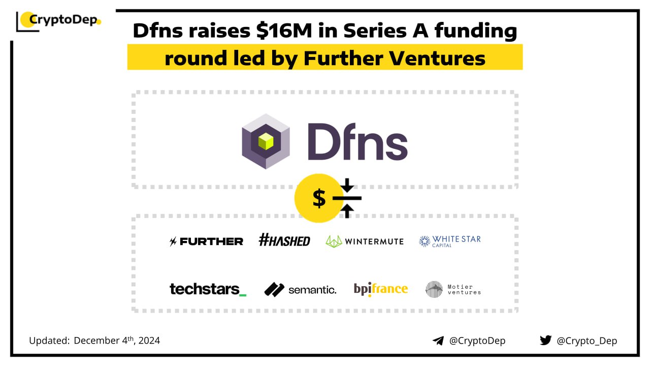 Dfns has announced the closure of its $16M investment led by Further Ventures. Additional round participants included Wintermute, Hashed, Semantic Ventures, Motive Partners, Motier Ventures, White Star Capital, Bpifrance, and Techstars. The project has also announced an upcoming launch of its new Data Integrity Framework. Dfns is the WaaS (wallets-as-a-service) platform chosen by fintechs and enterprises to streamline digital asset operations and onboard users into crypto, safely.