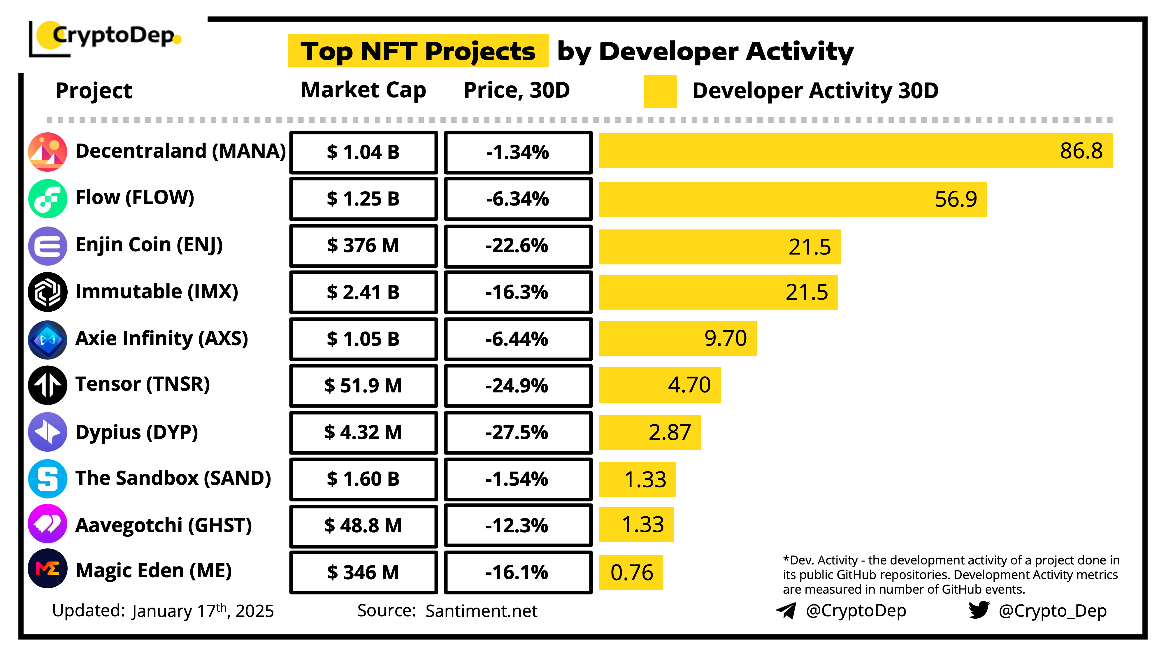 Top NFT Projects by Developer Activity