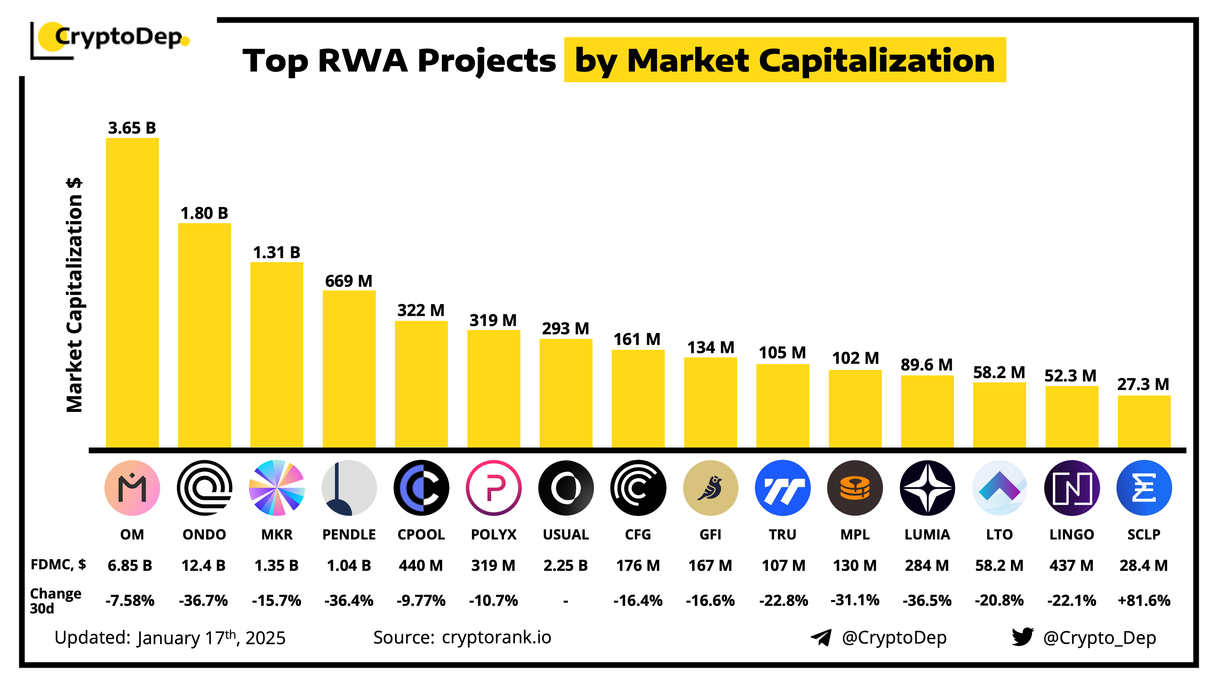 Real World Assets (RWAs) became one of the most hyped narratives of current market momentum. Let's explore the leading RWA projects ranged by market capitalization.