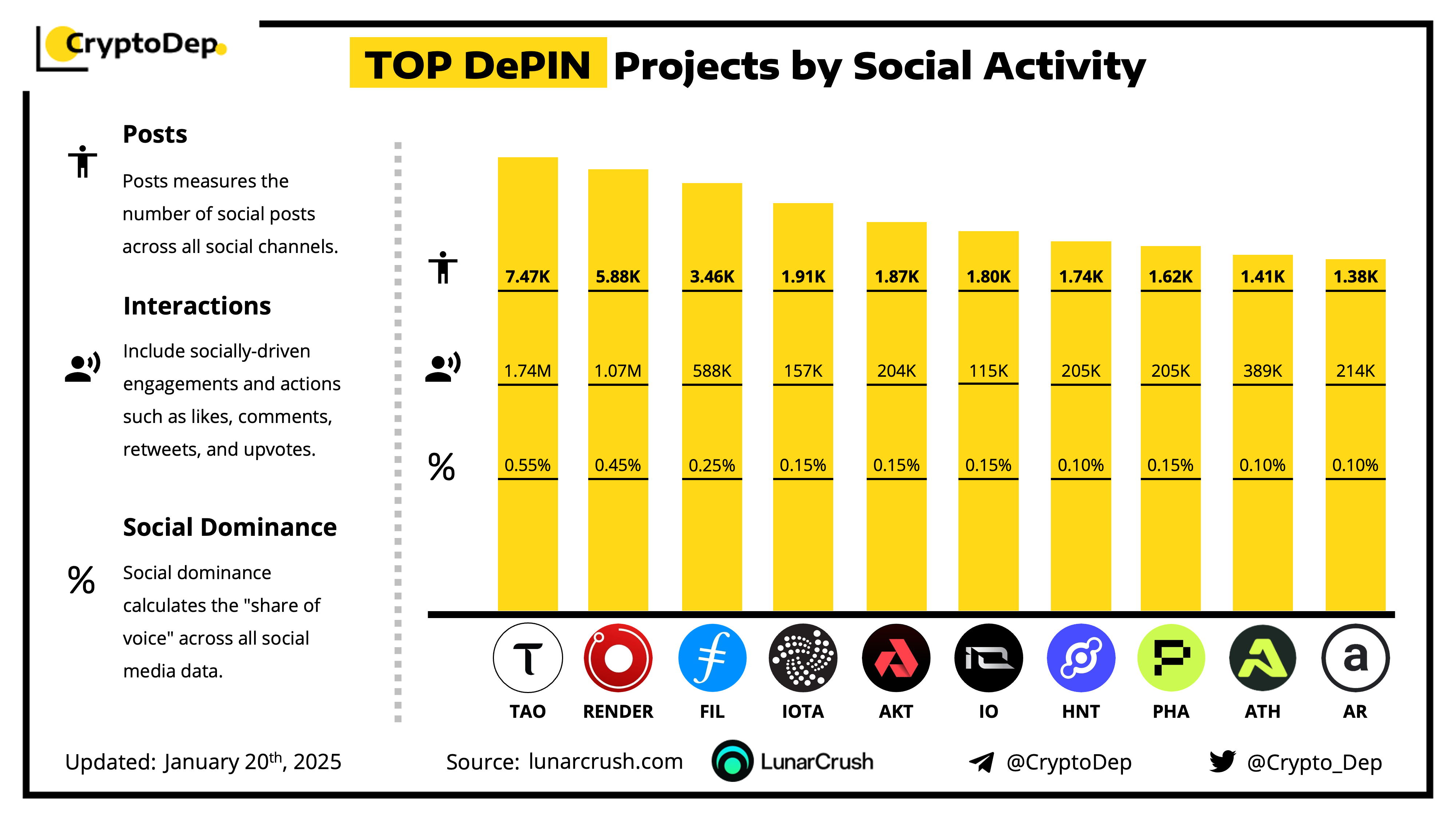 Interactions include socially-driven engagements and actions such as likes, comments, retweets, and upvotes.